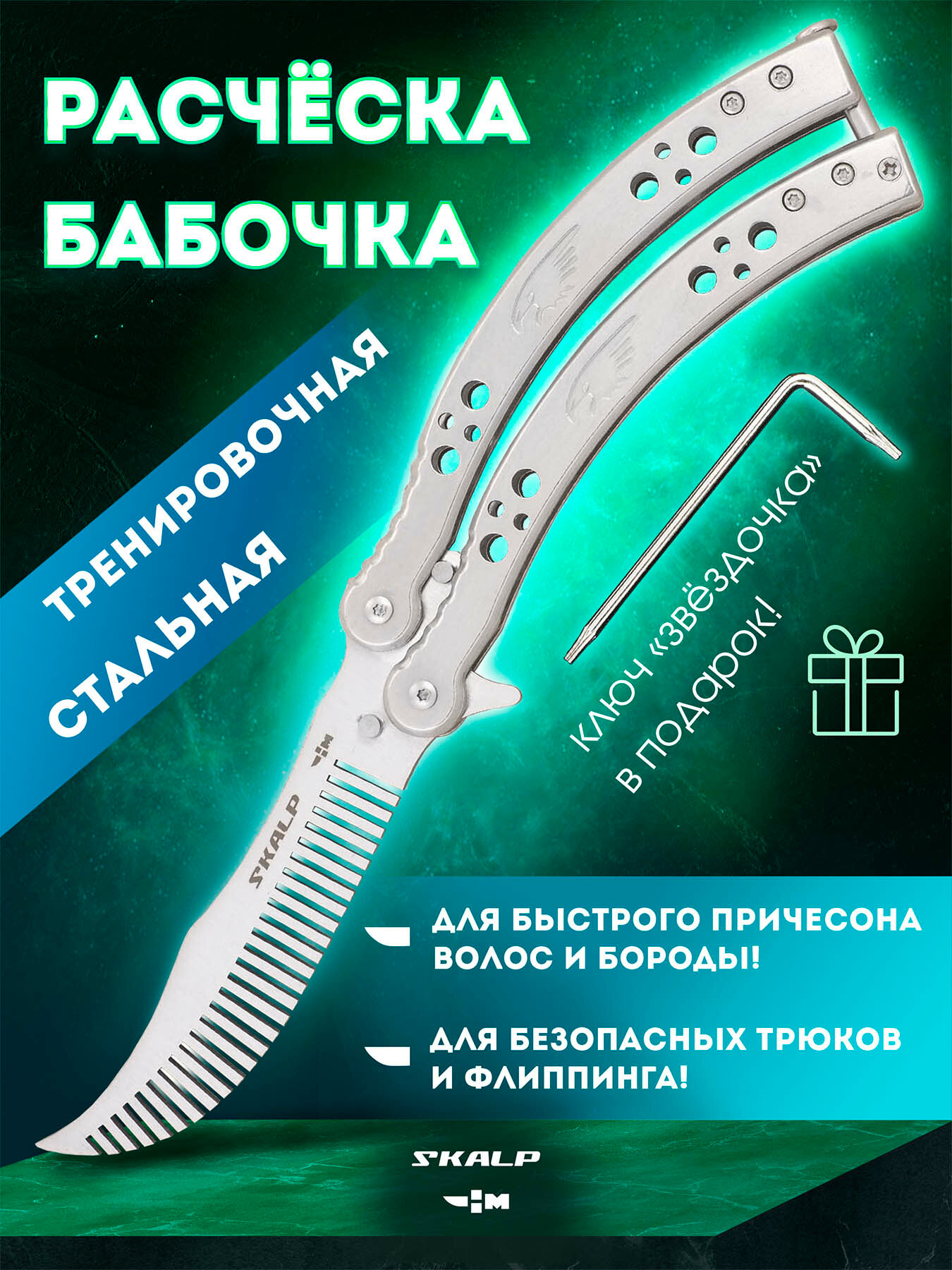 Расческа для бороды и волос в виде ножа бабочки для выполнения трюков Ножемир SKALP металл BRA-26 интересное: