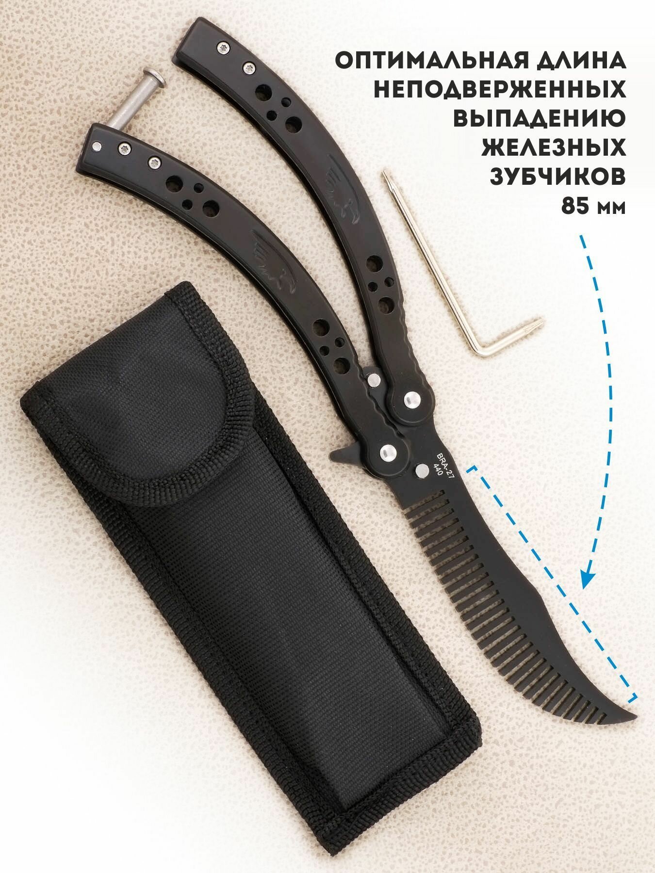 | В комплекте | Расческа нож - бабочка, чехол, ключик для болтиков, упаковка |