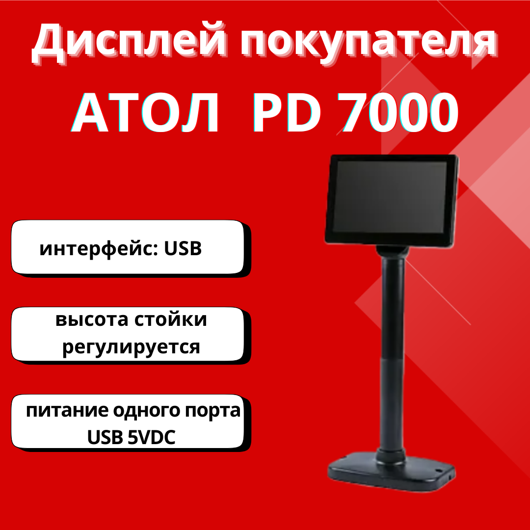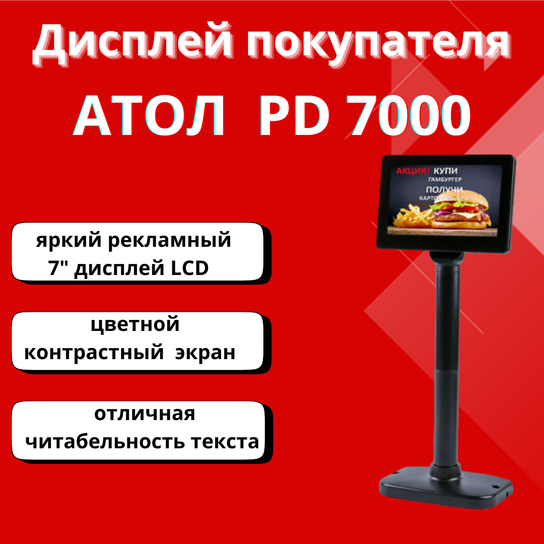 Дисплей табло покупателя цветной АТОЛ PD-7000, USB, LCD 800*480, черный интересное: