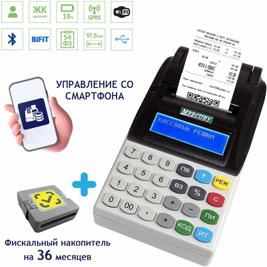 Онлайн-касса Меркурий 185Ф с фискальным накопителем 36 месяцев интересное: