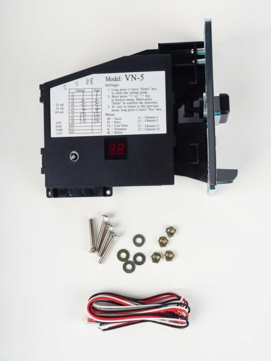 | Комплектация | Монетоприёмник VN-5 с металлической передней панелью - 1шт. Набор крепежей и проводов - 1шт. |