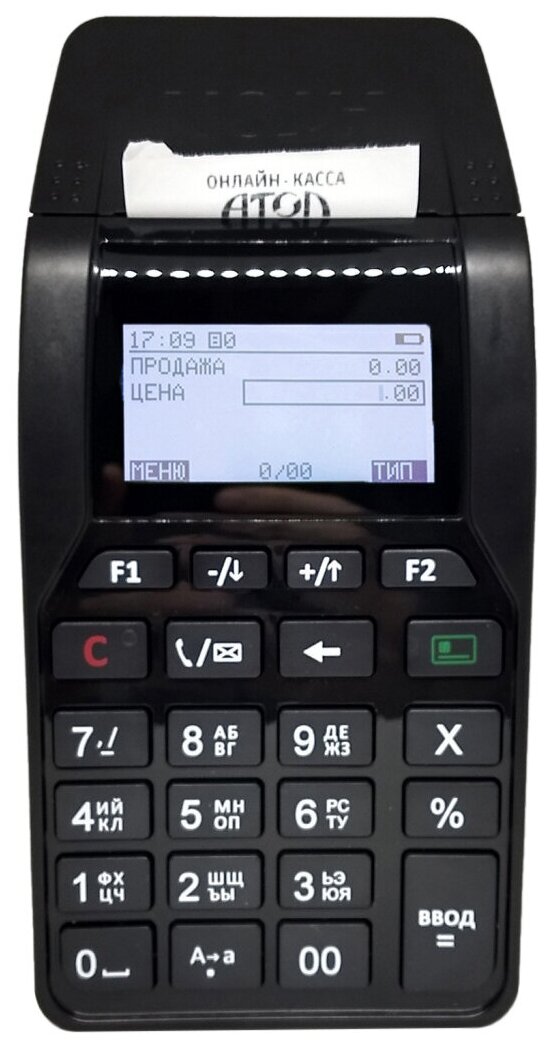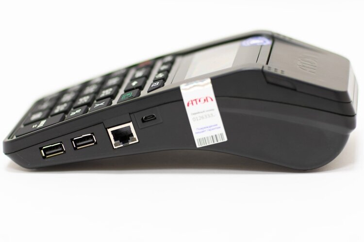 | Особенности | встроенный принтер чеков / встроенный фискальный накопитель / подключение банковского терминала / подключение весов / подключение денежного ящика / подключение сканера штрих кода / портативный |