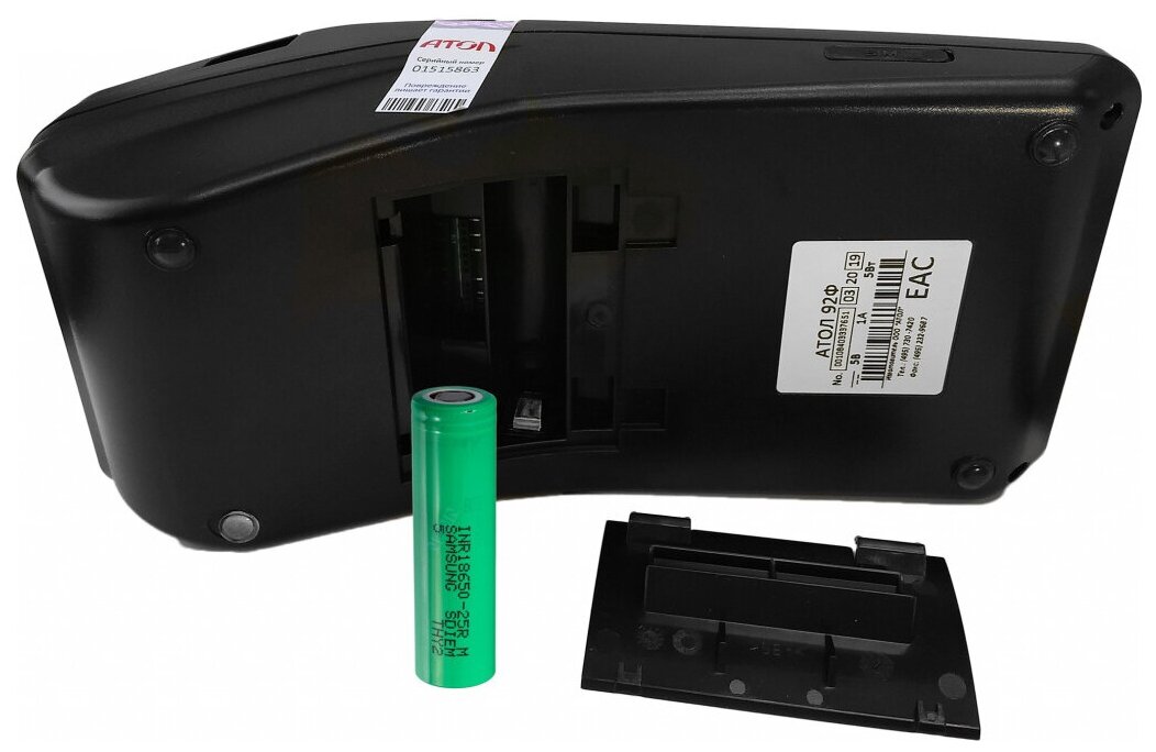 | Комплектация | - ньюджер Атол 92Ф с фискальным накопителем на 15 месяцев; - блок питания; - аккумулятор; - кабель ККТ–ПК микро-USB; - рулон термочувствительной бумаги; - руководство по эксплуатации; - паспорт фискального накопителя. |