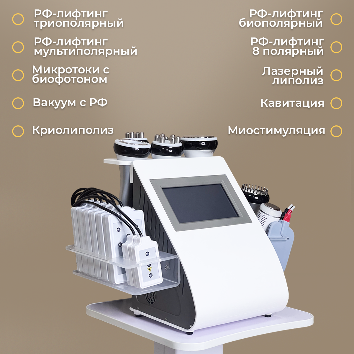 | Функции | ELOS-омоложение кожи / RF-лифтинг / вакуумный массаж / кавитация / криолиполиз / криотерапия / лазерный липолиз |
