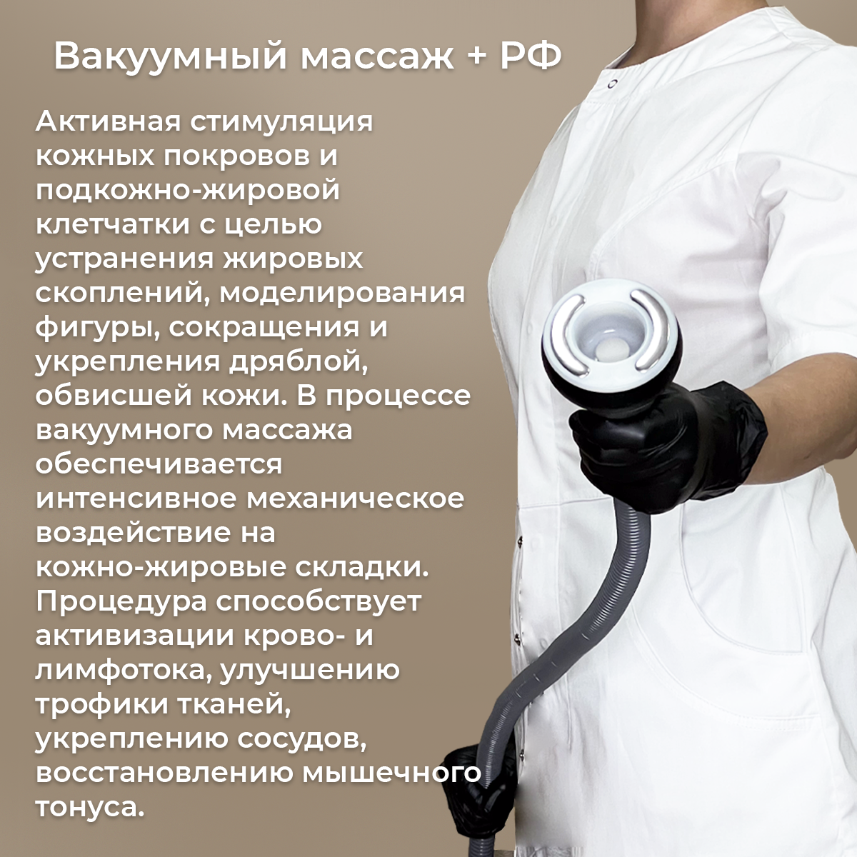 | Процедура | кавитация, лимфодренаж, лифтинг, массаж, мезотерапия |