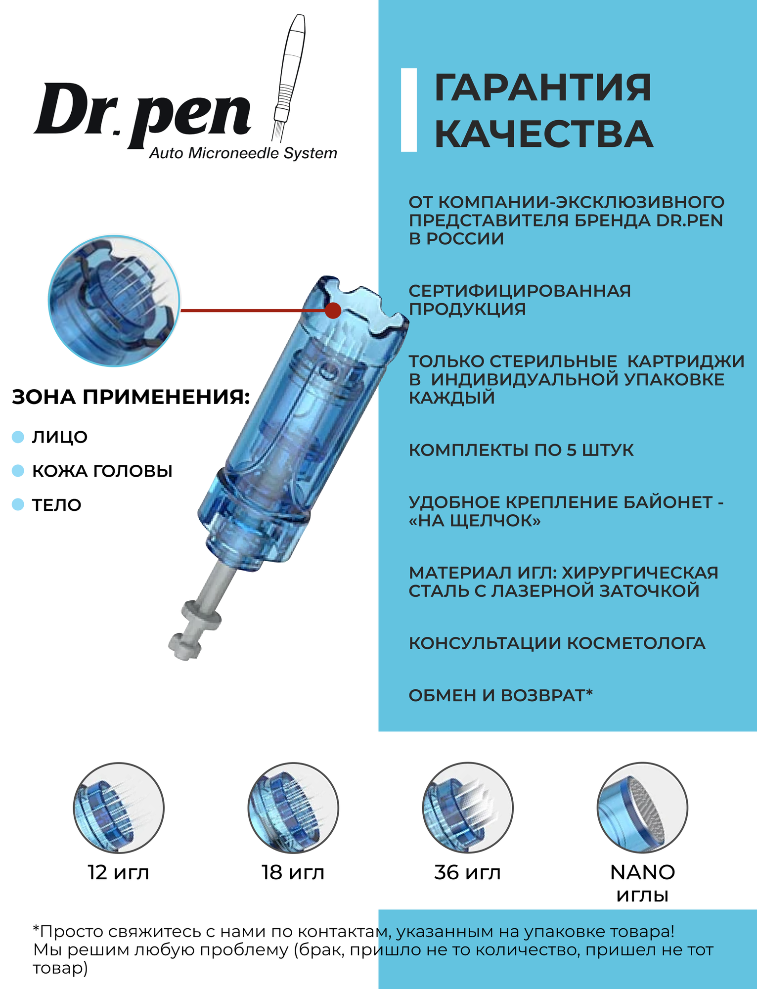 Dr.pen Картридж для дермапен на 36 игл / насадка для моделей аппарата dermapen dr pen A11 / A9 / M8s / А8s, 5 шт. интересное: