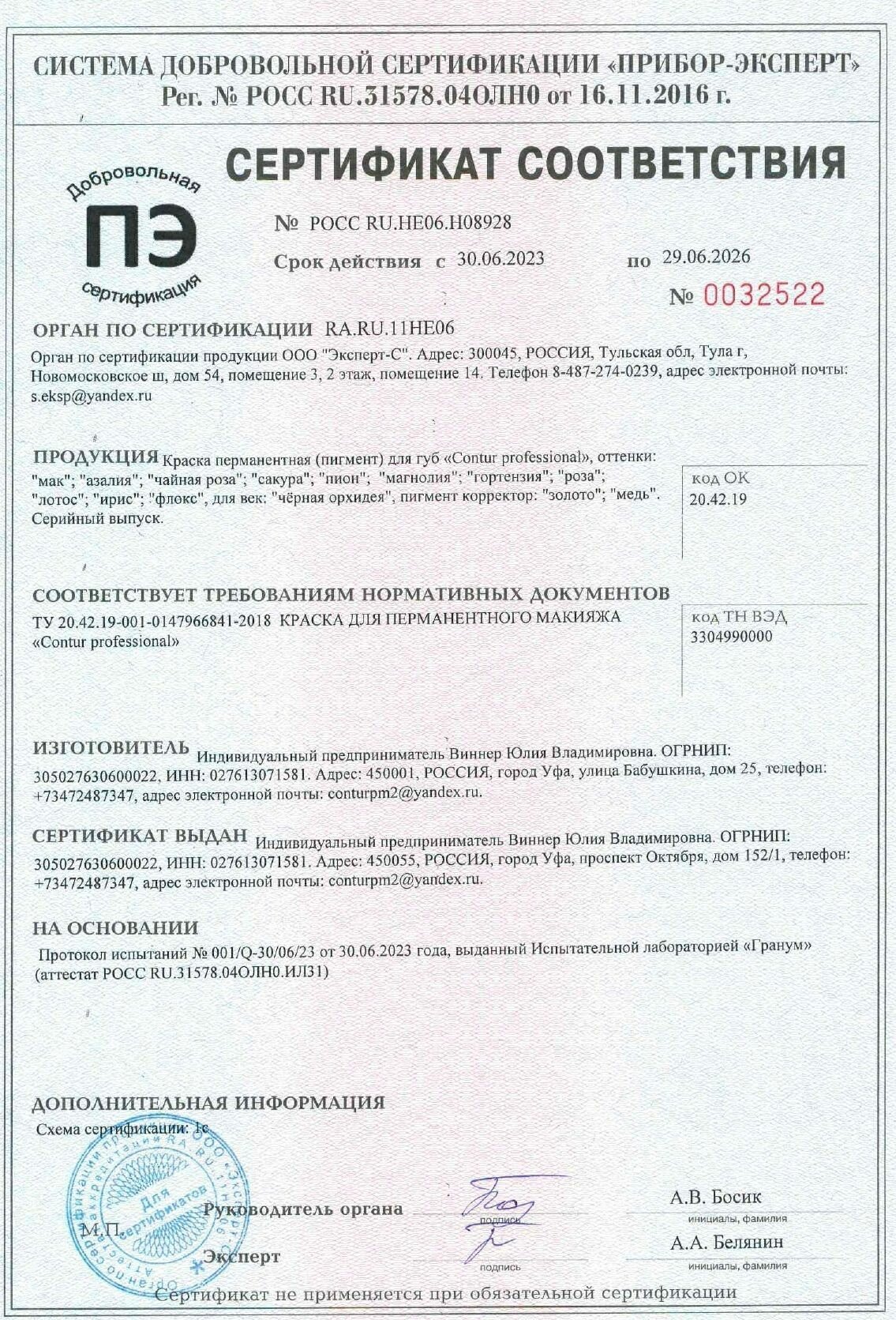 | Основа пигмента | глицерин |