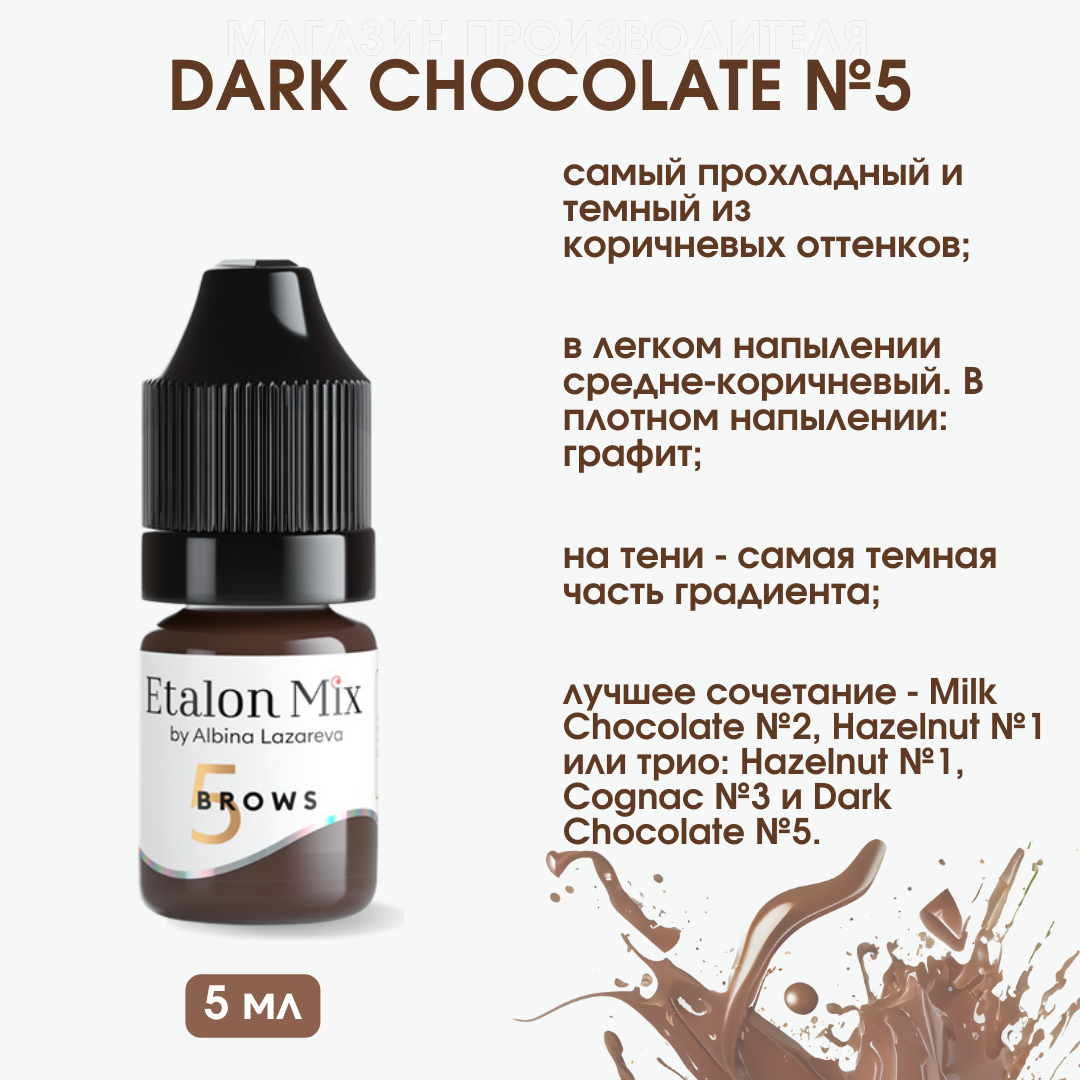Купить Etalon Mix Пигмент для татуажа бровей №5 "Горький шоколад", 5мл. Пигменты Альбины Лазаревой.