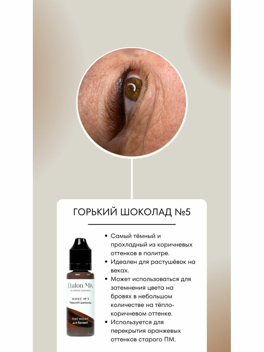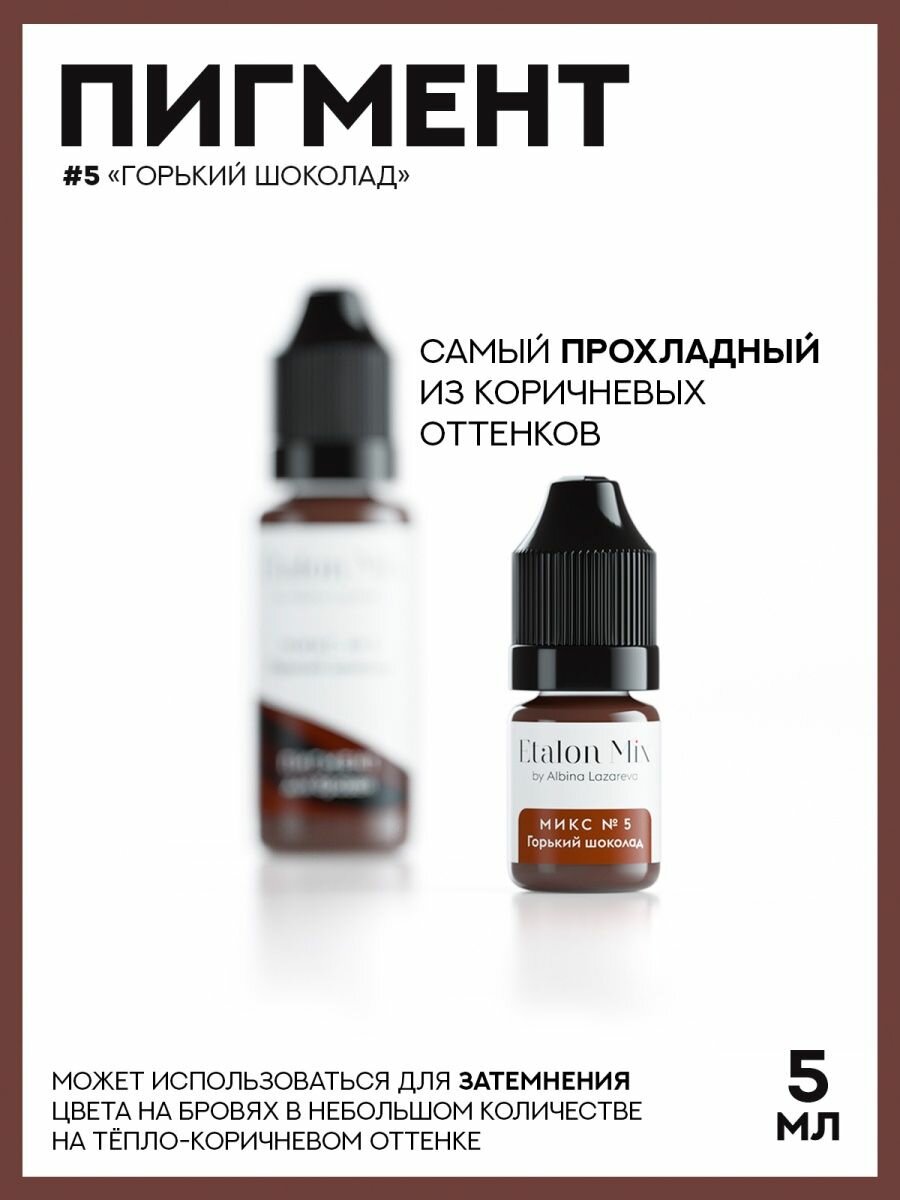 Etalon Mix Пигмент для татуажа бровей №5 "Горький шоколад", 5мл. Пигменты Альбины Лазаревой. интересное: