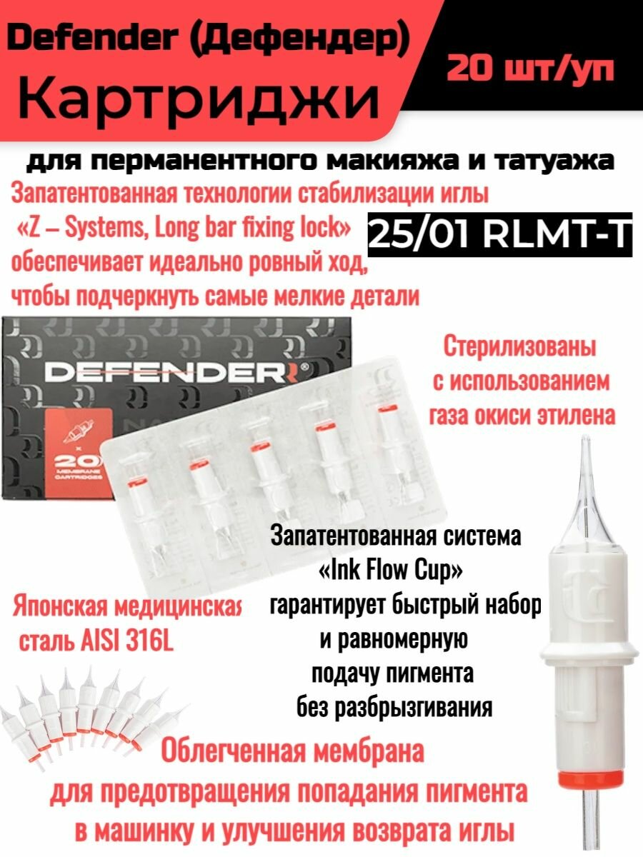 СохранитьDefender 25/01 RLMT, 20 шт/уп. Картриджи для перманентного макияжа и тату интересное: