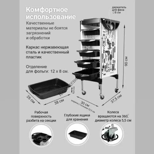 Профессиональная парикмахерская тележка X 11-6S белая интересное: