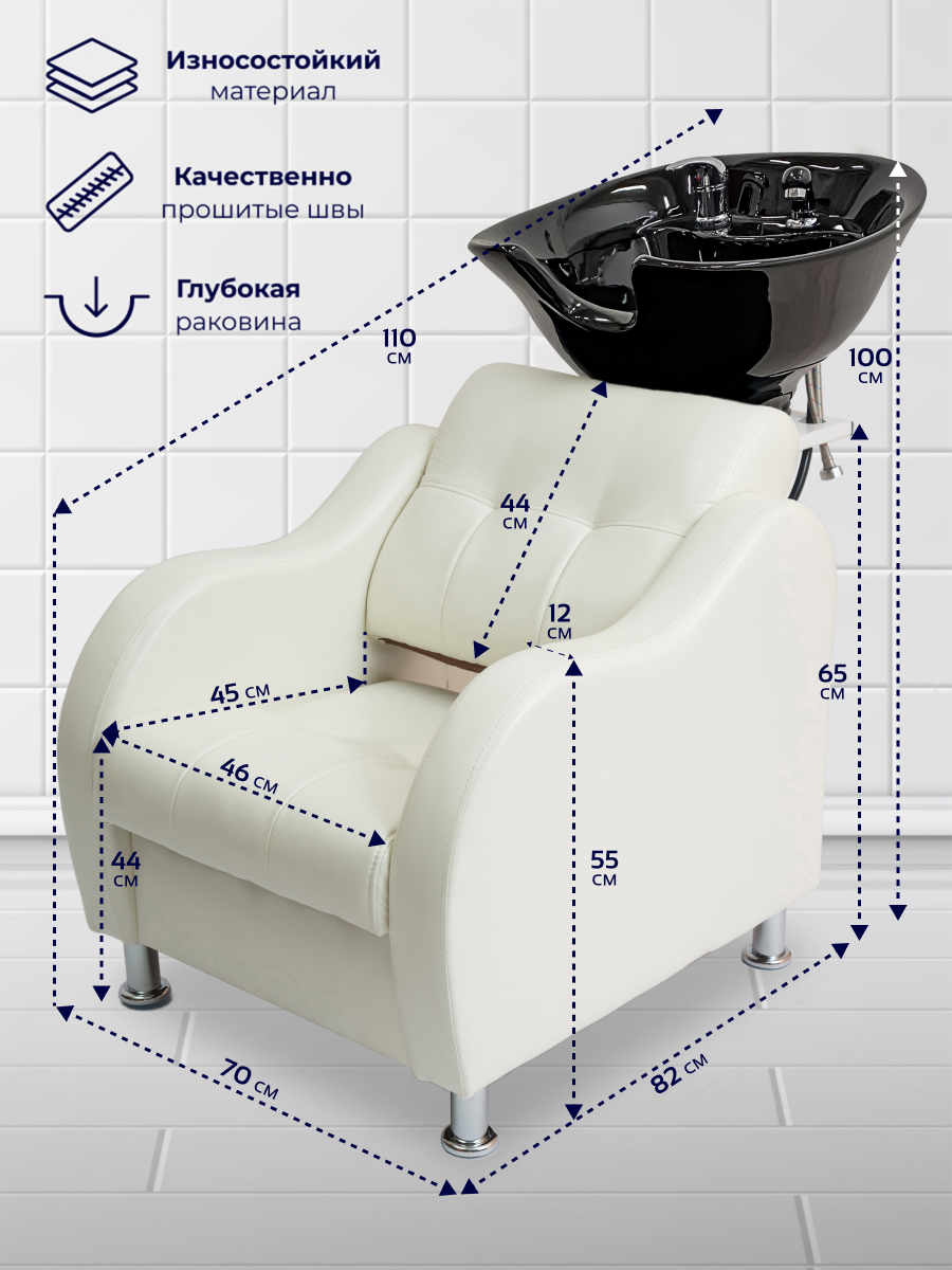 Купить Парикмахерская мойка с креслом Волна, глубокая раковина черного цвета, Уютный мастер, белый
