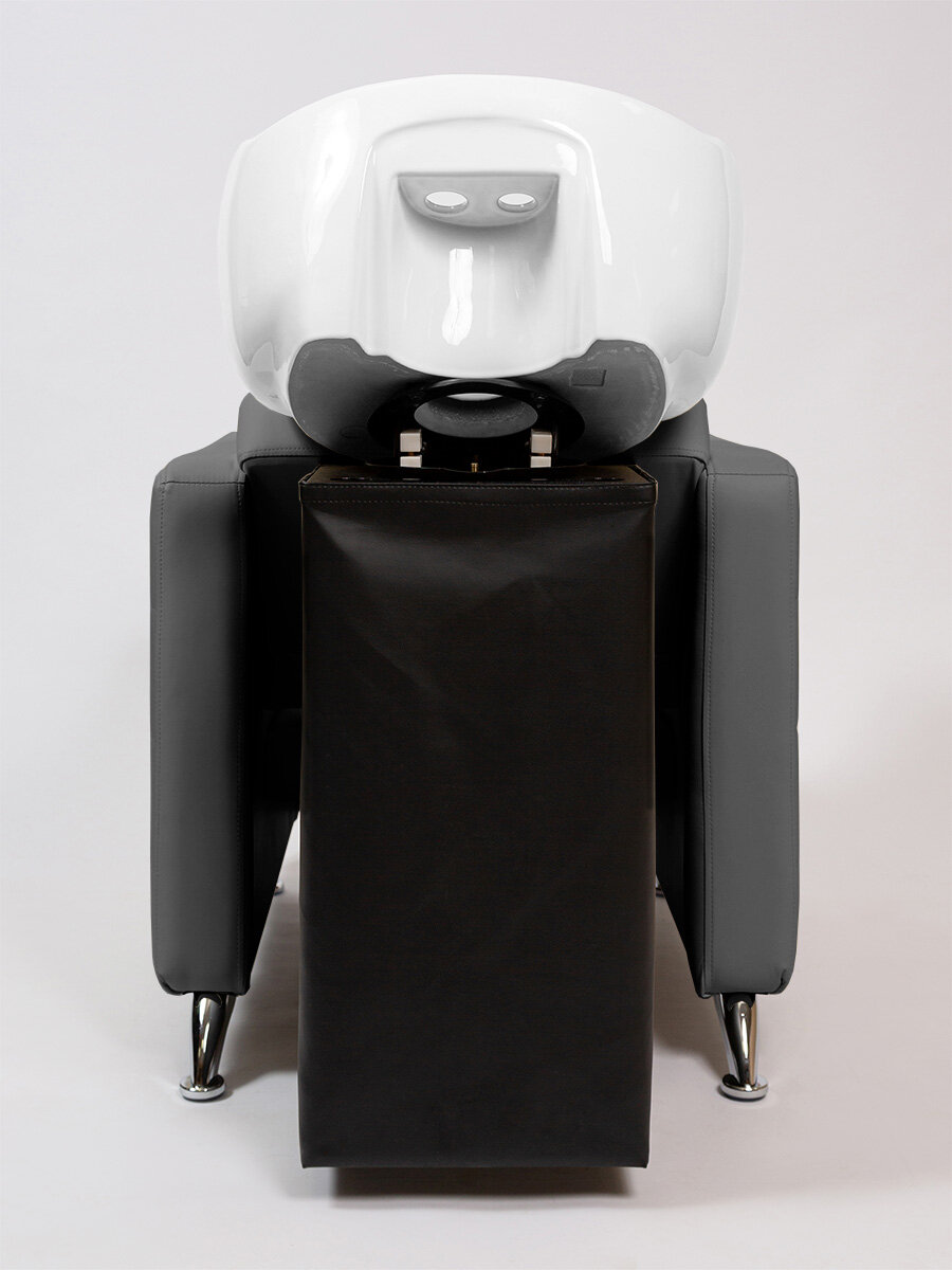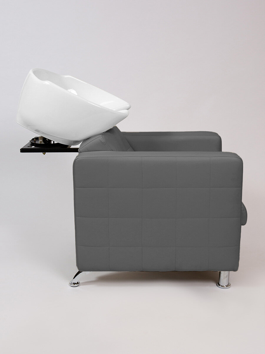 Парикмахерская мойка с креслом Квадрат, глубокая раковина белого цвета, Уютный мастер, темно- серый