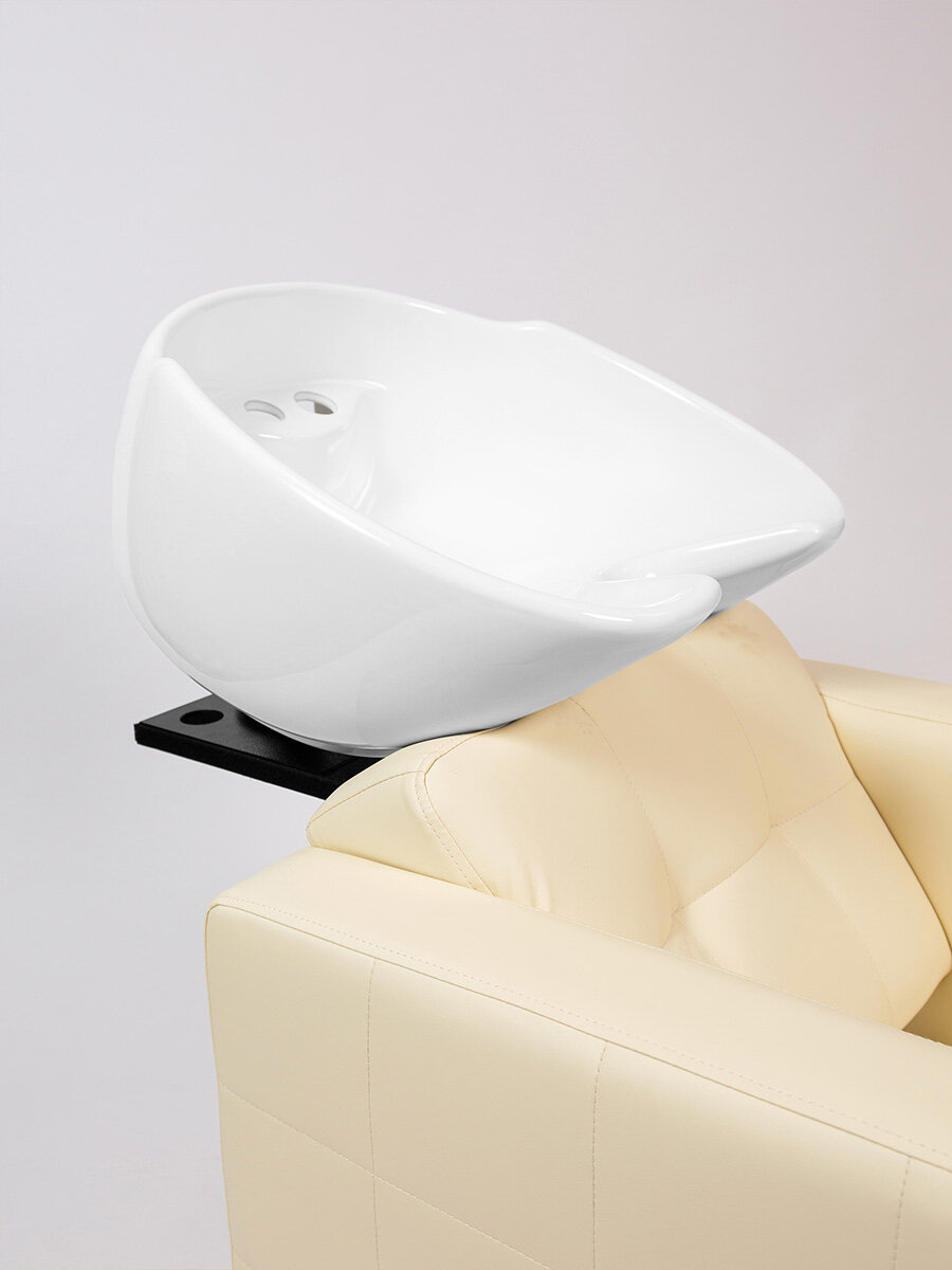Купить Парикмахерская мойка с креслом Квадрат, глубокая раковина белого цвета, Уютный мастер, кремовый