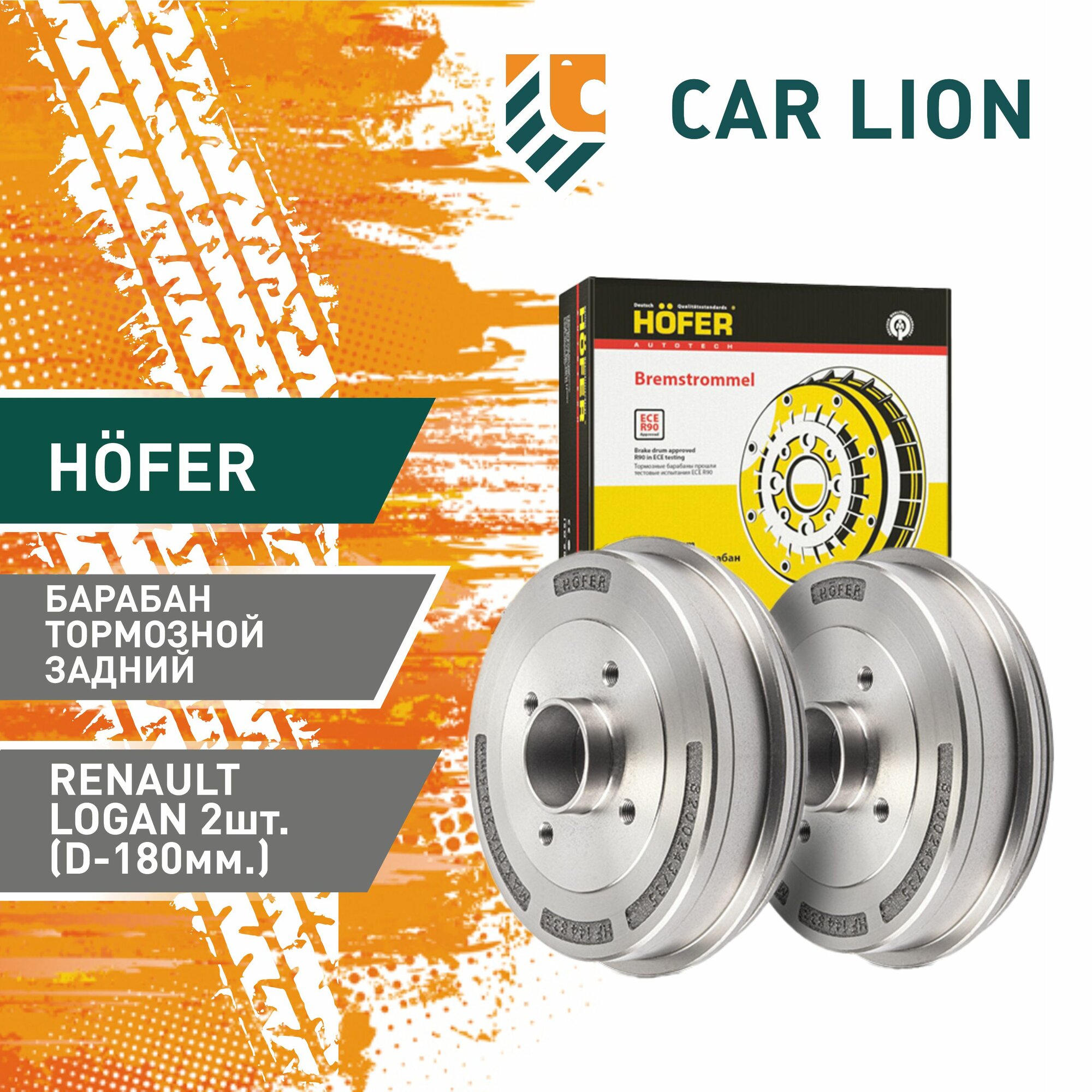 Купить Барабан тормозной задний Lada Largus, Renault Logan (2004-), Symbol (2008-), Clio (1998-) без ABS d=180 пара HF 144 832 HOFER