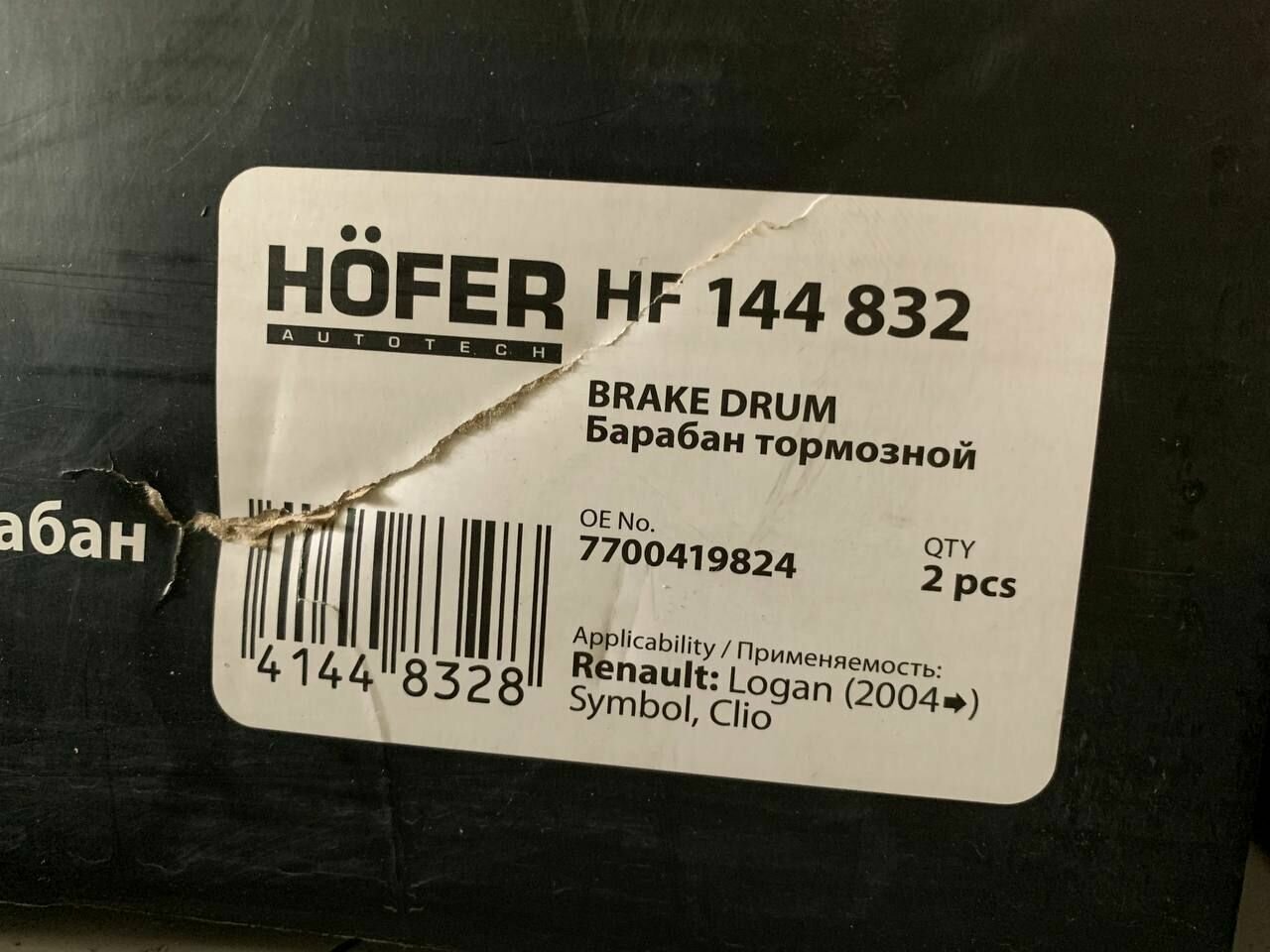 Барабан тормозной HOFER HF144832 для Renault Logan без ABS 2шт