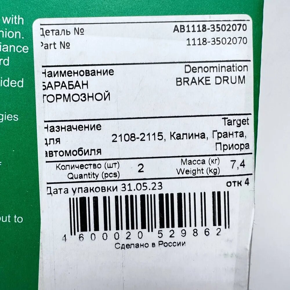 Барабан тормозной ВАЗ (мин. 2шт) AVTOREAL арт. AB11183502070 интересное: