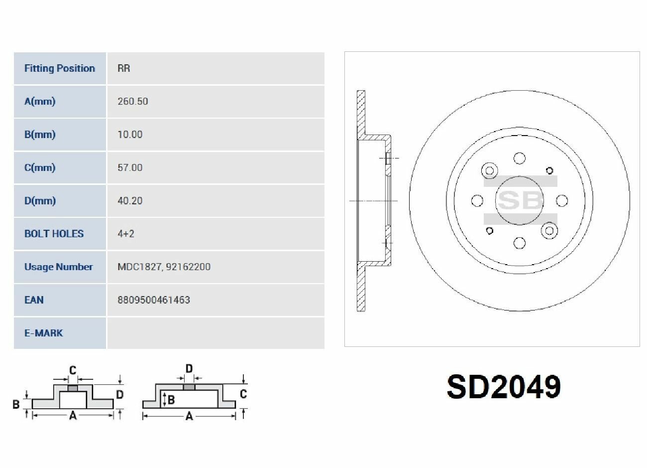SANGSIN BRAKE SD2049 диск тормозной задний!\ KIA Cerato/Shuma 1.5/1.8 96-04