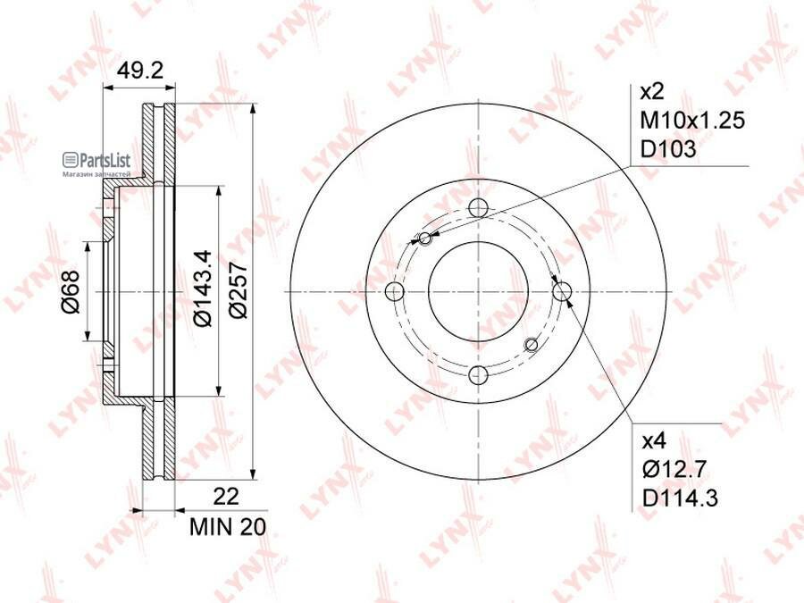 Диск Тормозной Перед. [257X22] LYNXauto арт. BN1104
