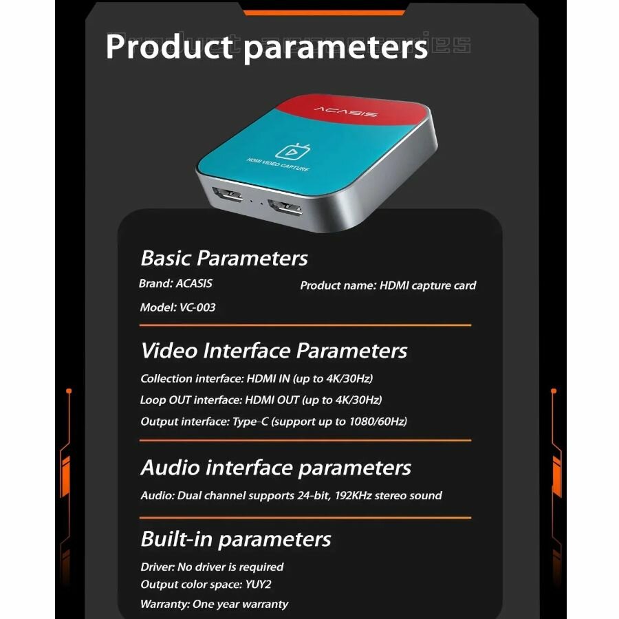 Карта видеозахвата Acasis VC-003 HDMI - USB 3.0 HD-видео и аудио с разрешением 4K 60Hz 1080p, 3,5 мм портом AUX интересное: