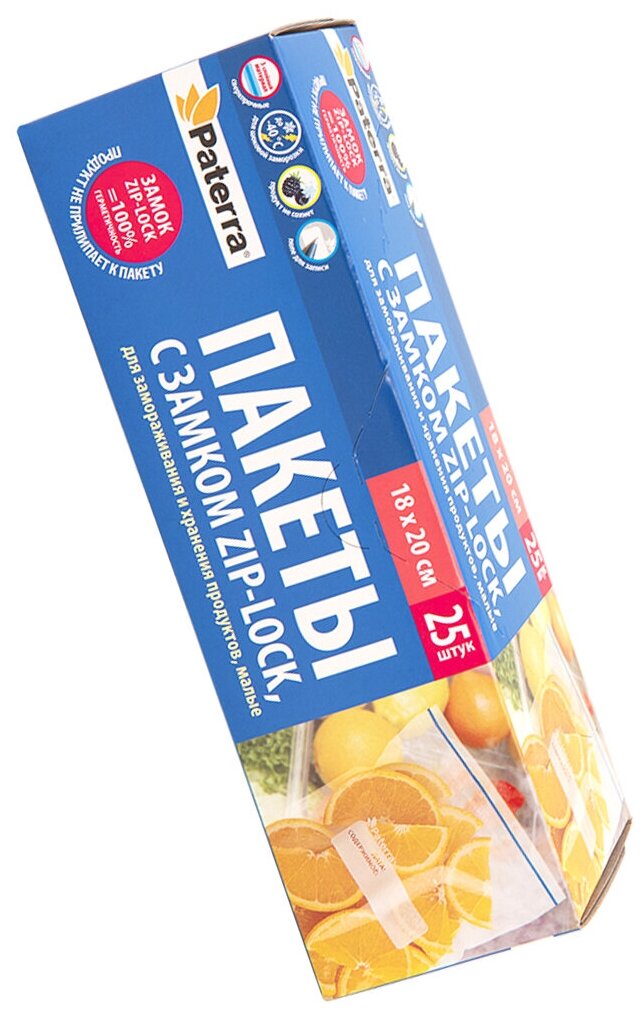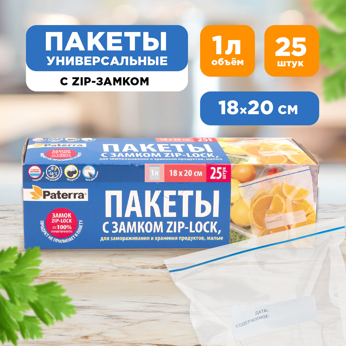 Пакеты PATERRA для хранения и замораживания с зип-замком 18х20 см, 1 л, 25 шт