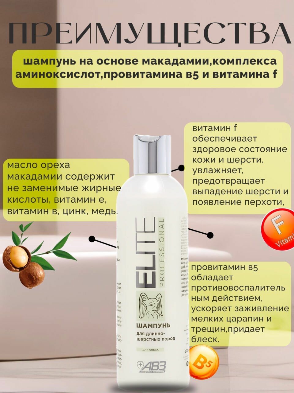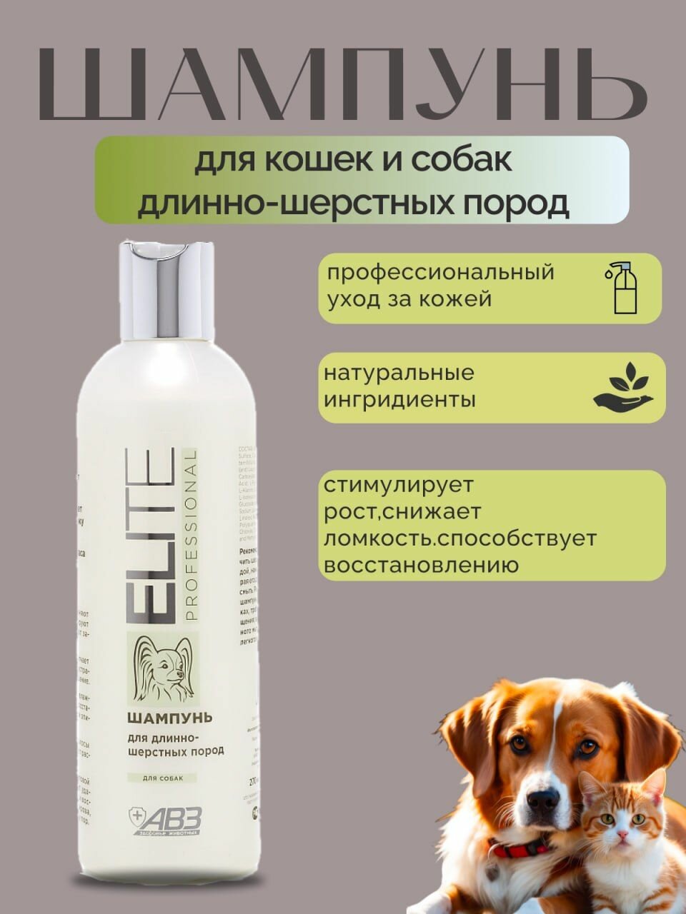 Шампунь АВЗ Elite Professional для длинношерстных пород собак, 270 мл