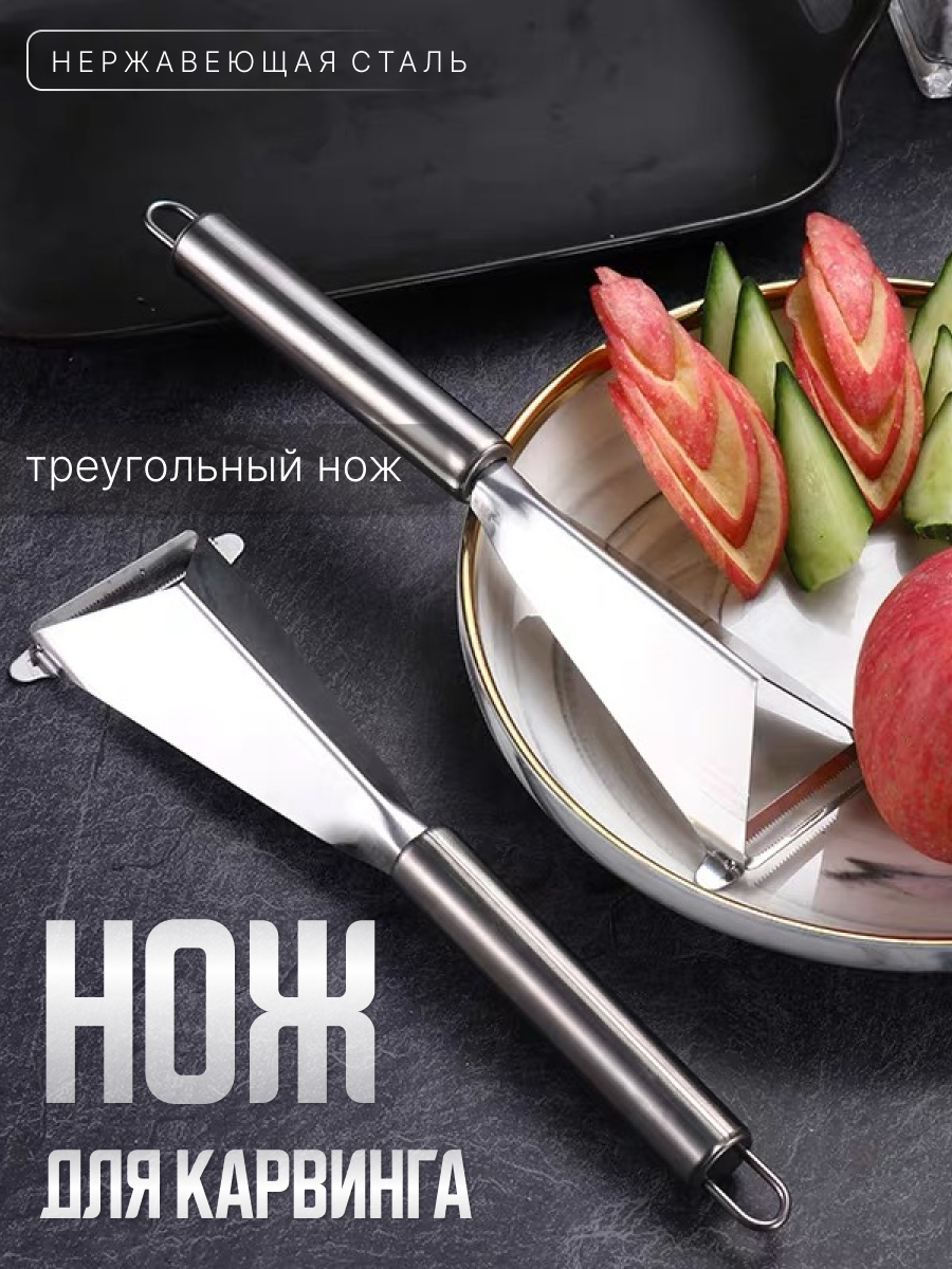 Нож треугольный для фигурной резки овощей и фруктов, нож для карвинга, нож фигурный, слайсер, нож кухонный интересное:
