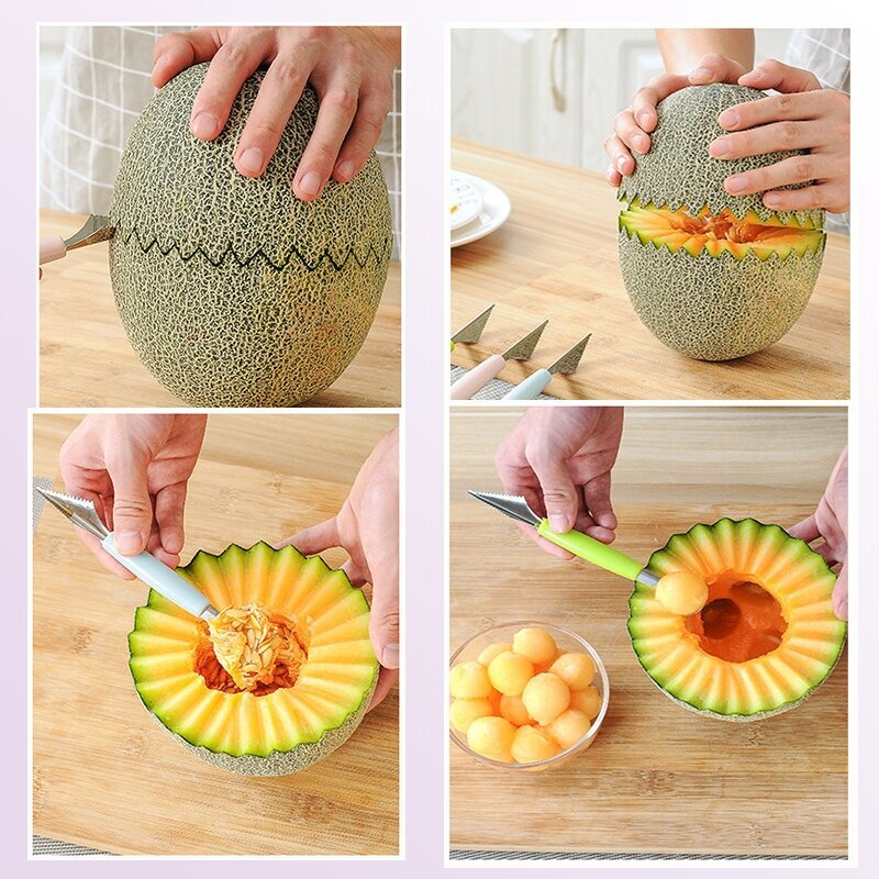 Нож 2 в 1 для карвинга, для фигурной резки овощей и фруктов зелёный