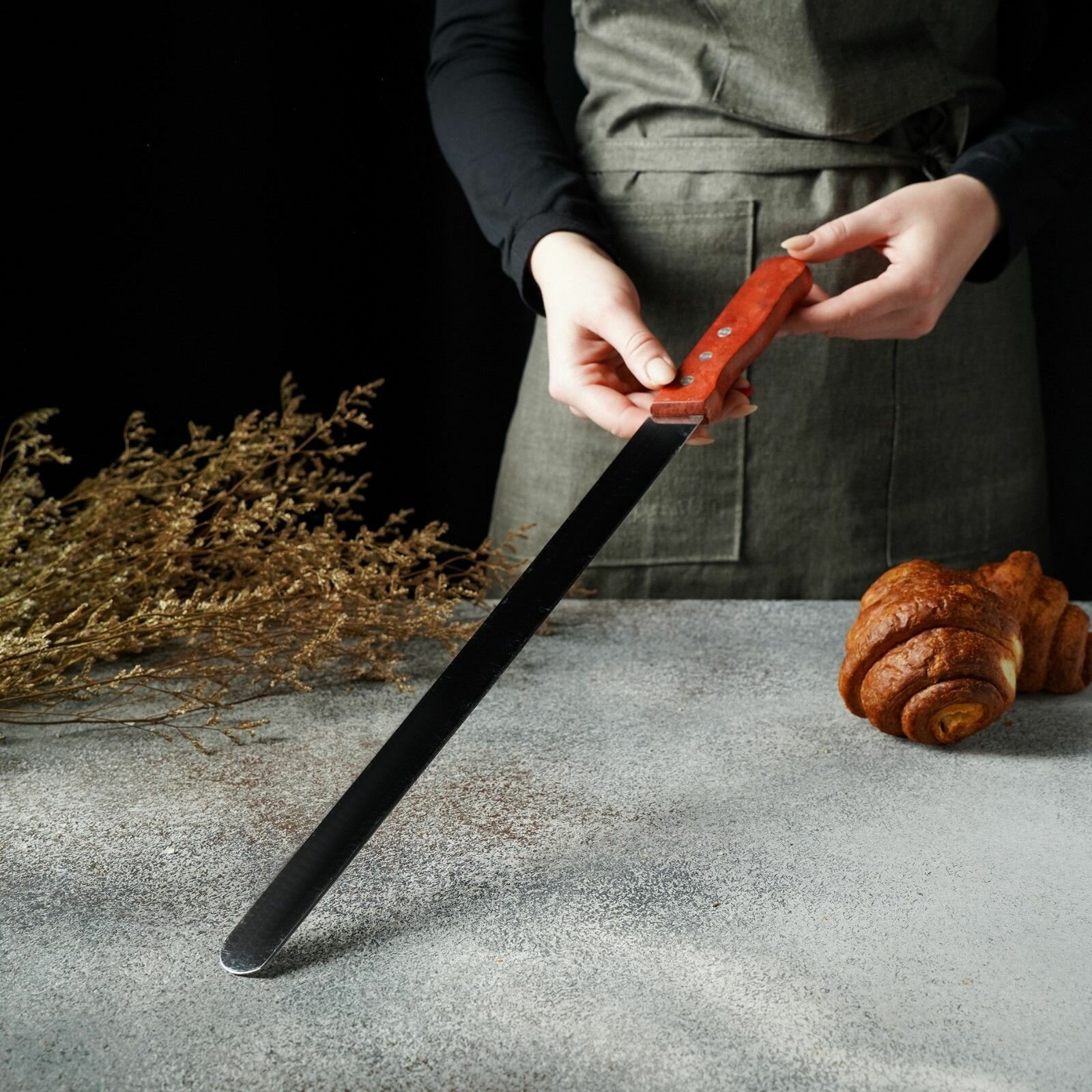 Купить Нож для бисквита ровный край KONFINETTA, длина лезвия 35 см, деревянная ручка