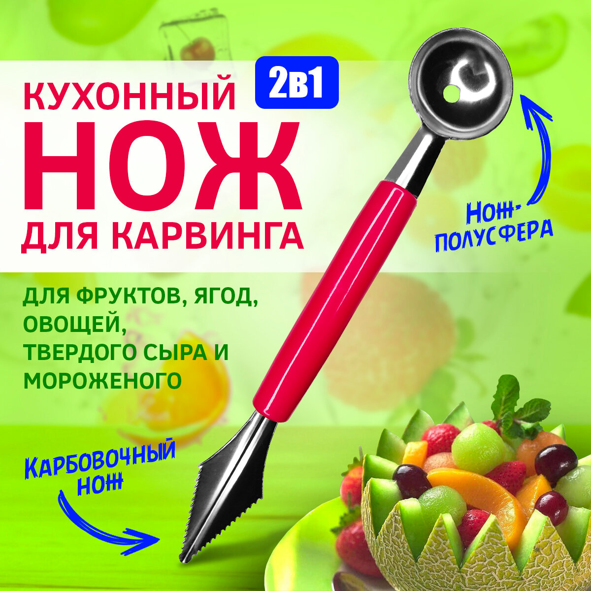 Нож для карвинга 2в1: Карбовочный нож + Нож-полусфера (Нержавеющая сталь) Красный интересное: