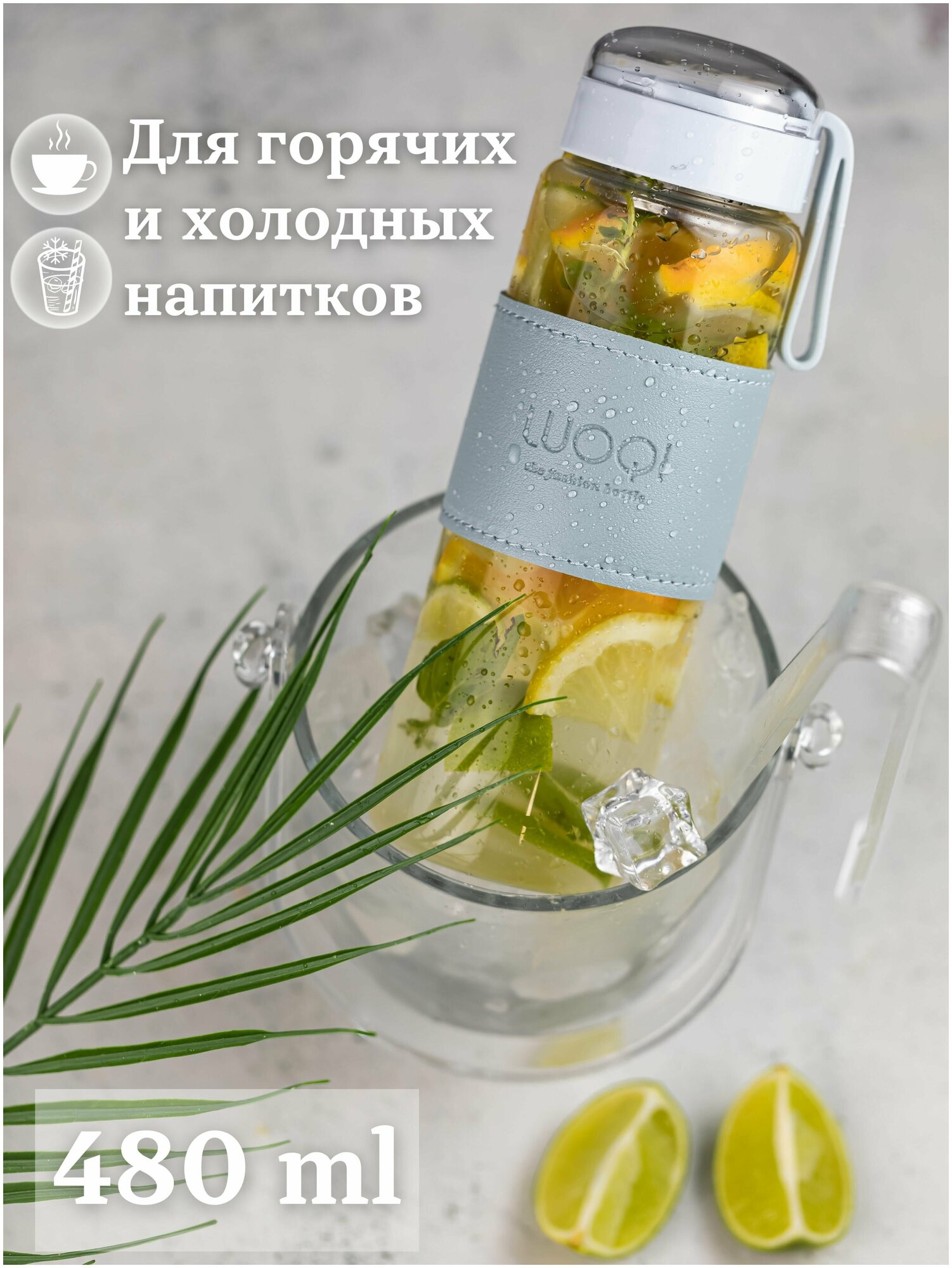 Стеклянная бутылка для воды чая коктейлей 0.5л. Для работы школы офиса спортзала + Сито-заварник