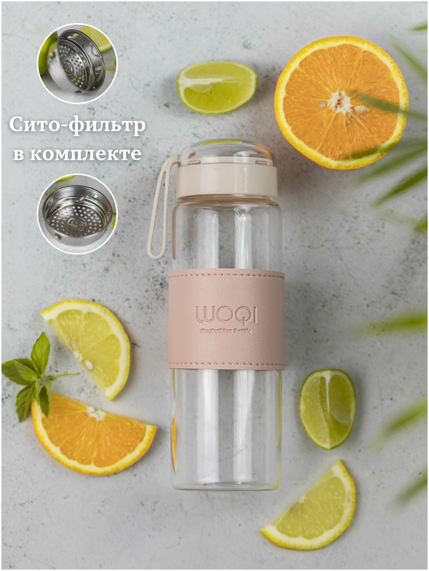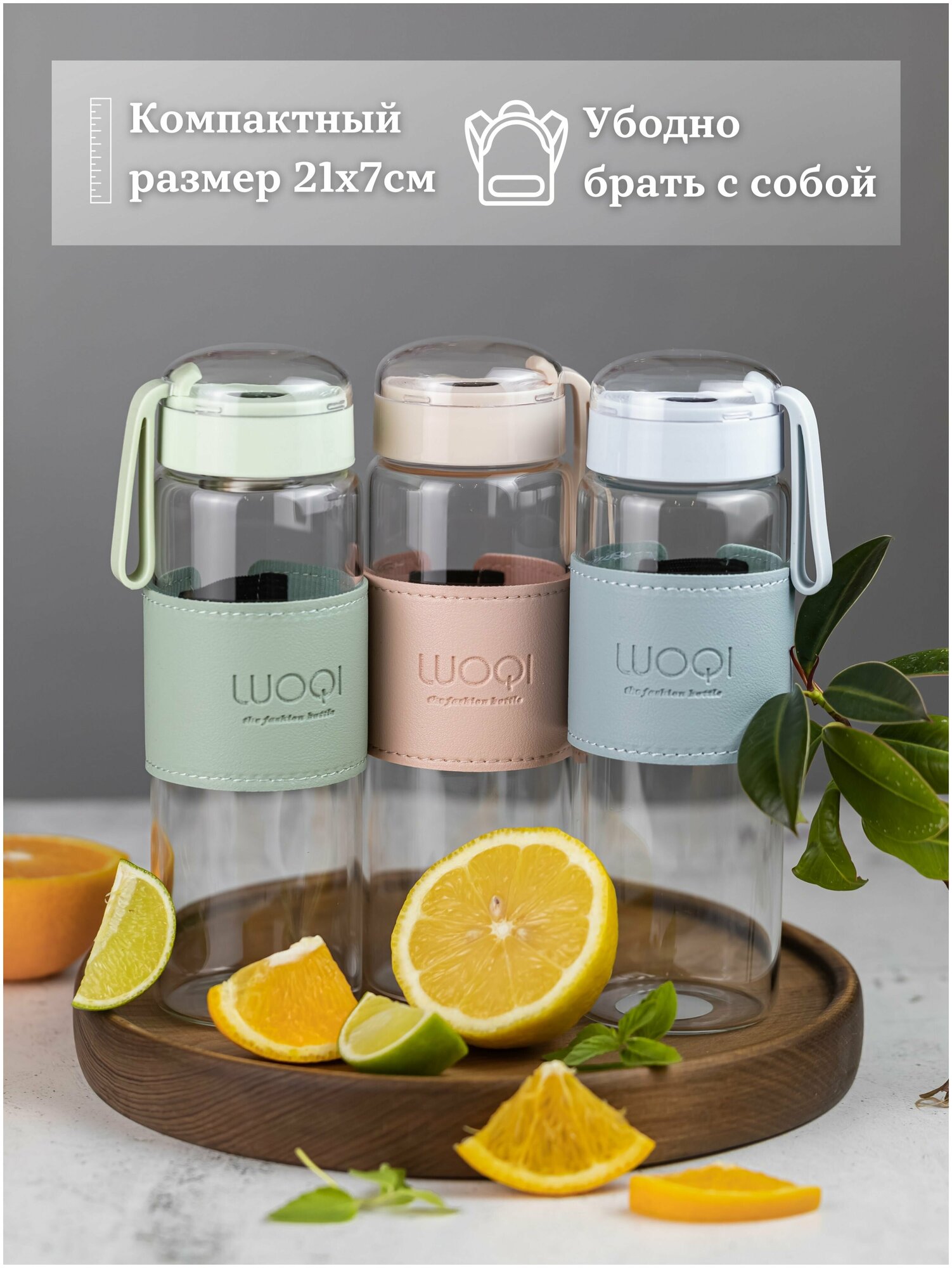 Стеклянная бутылка для воды чая коктейлей 0.5л. Для работы школы офиса спортзала + Сито-заварник интересное: