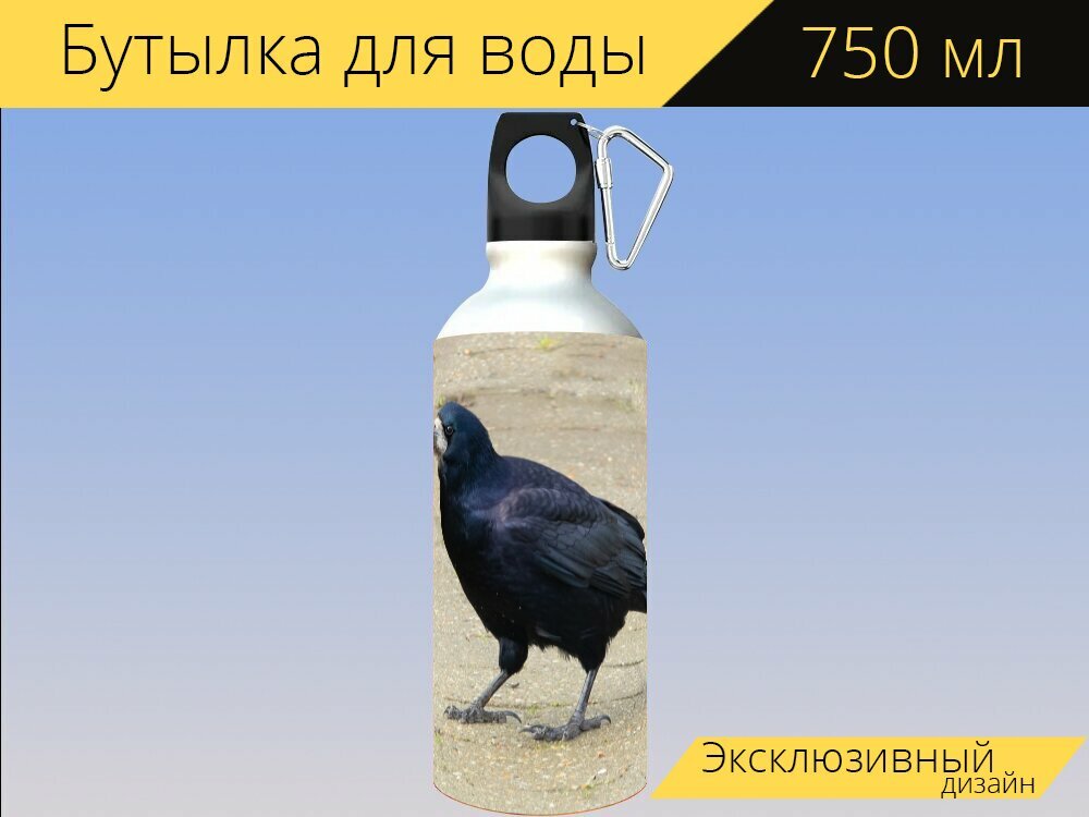 Купить Бутылка фляга для воды "Грач, птица, орнитология" 750 мл. с карабином и принтом