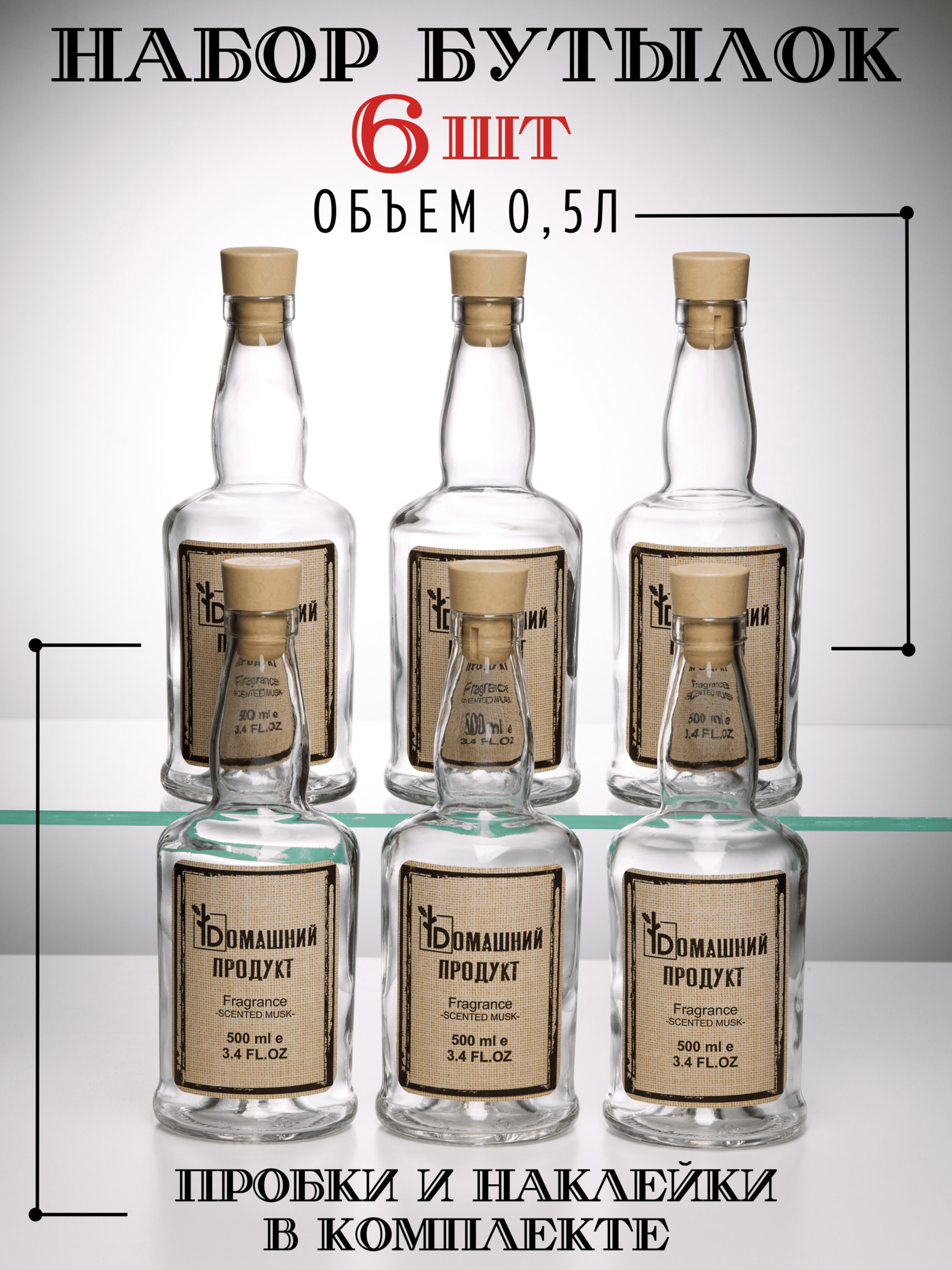 Набор бутылок стеклянных для самогона и настоек, 6 шт 0,5 л