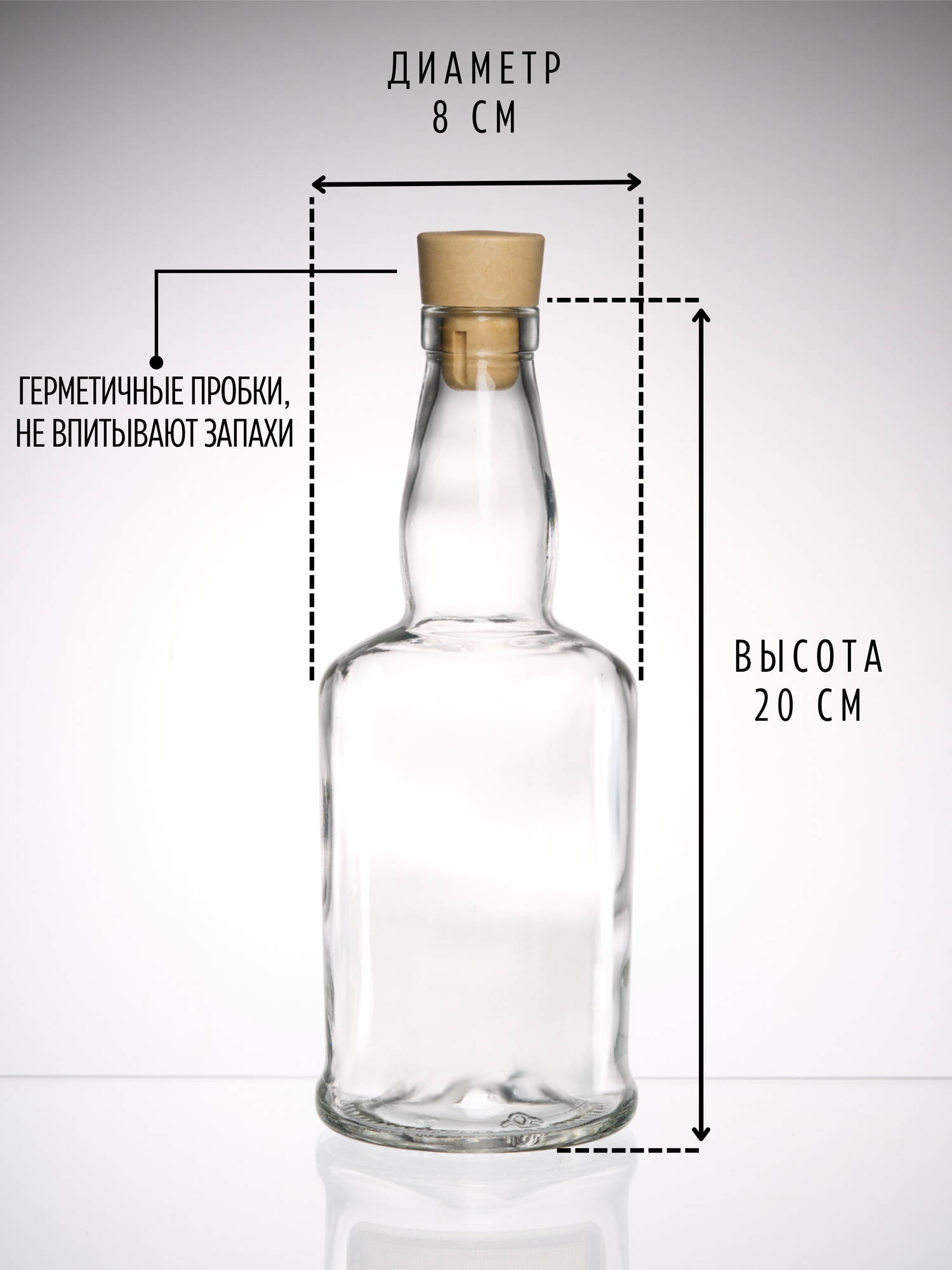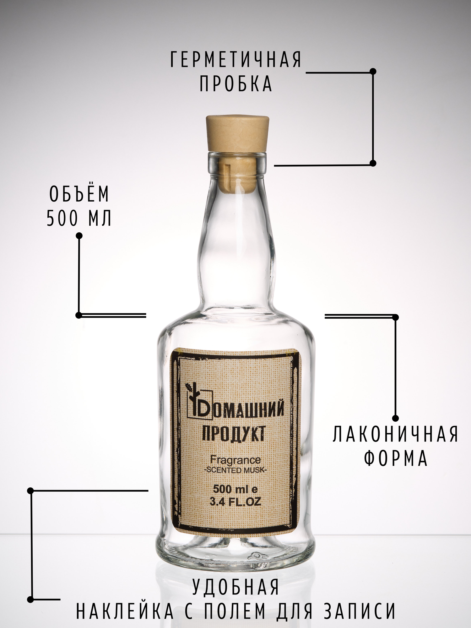 Бутылка стеклянная для самогона, для алкогольных напитков, для воды, с пробкой стекло, набор 6 шт 500 мл