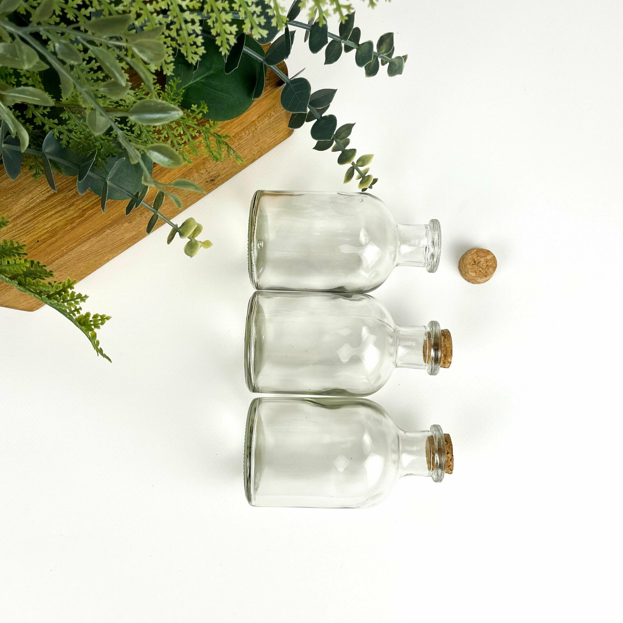 Купить Баночки - бутылочки с пробкой, стеклянные, прозрачные 125 мл, 5,8*10 см, набор 3 штуки