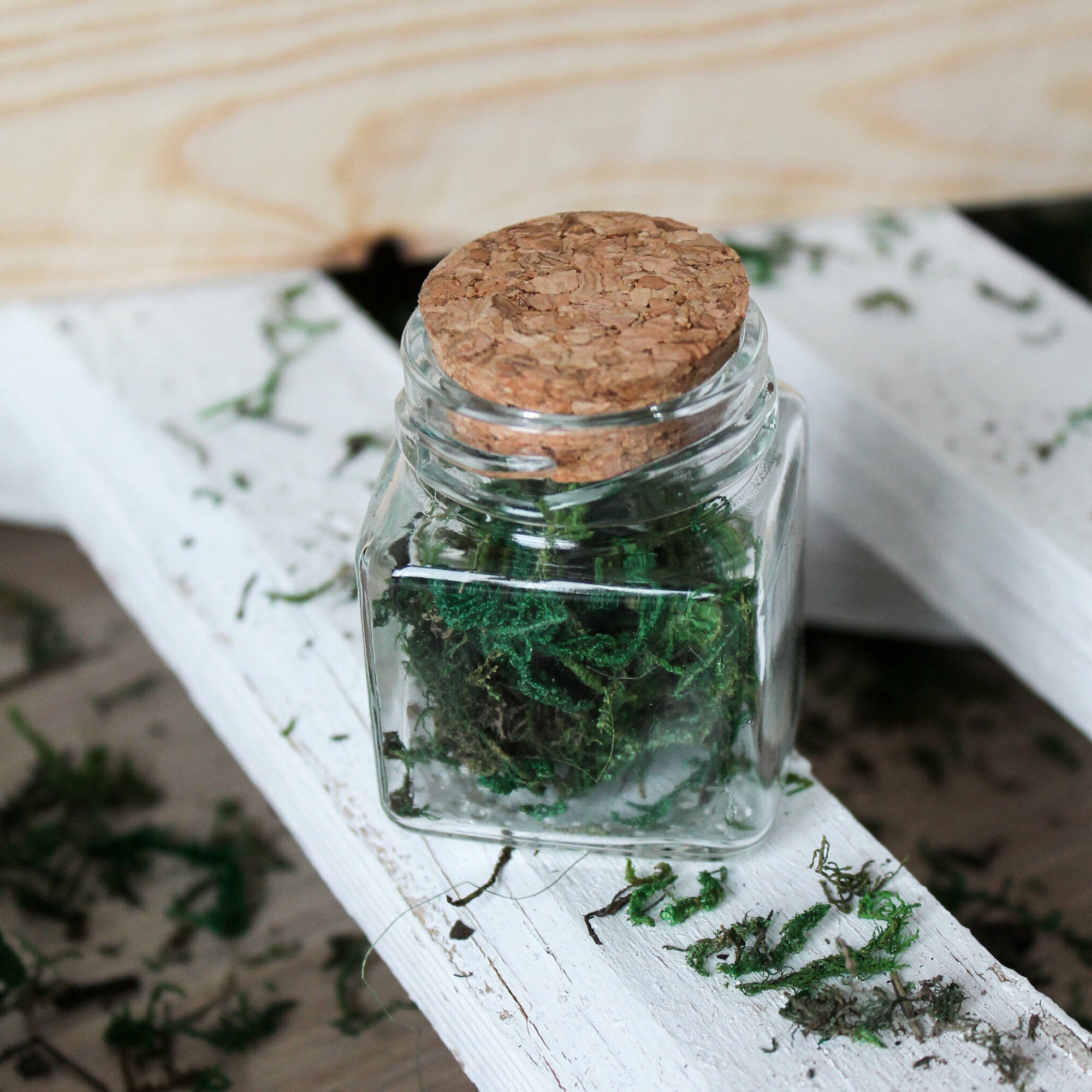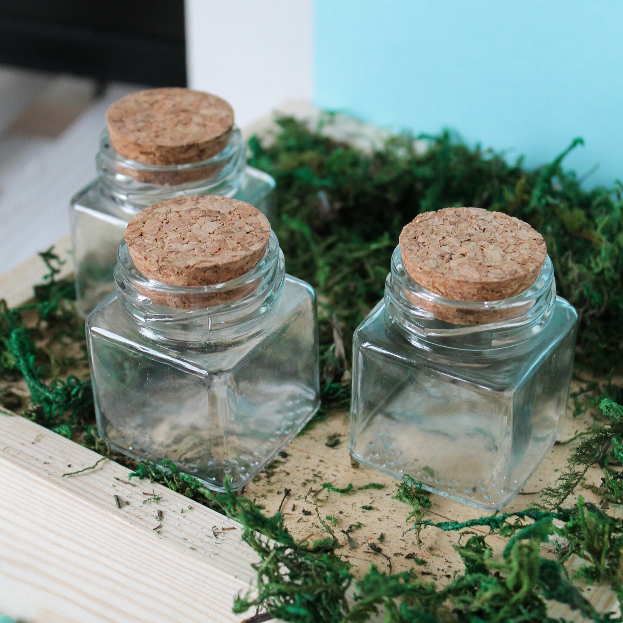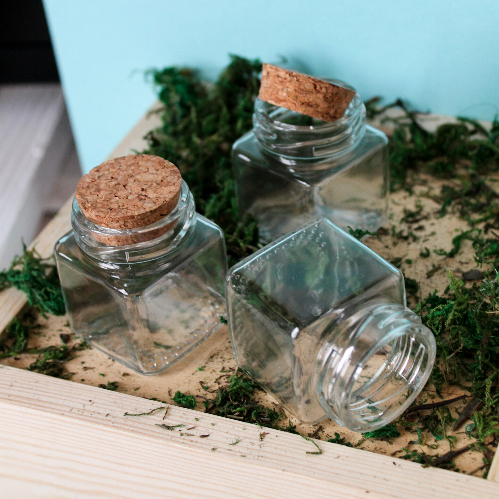 Баночки - бутылочки с пробкой, декоративные, стеклянные 100 мл, прозрачные, 6,5*6,5*6,5 см, 2 шт.