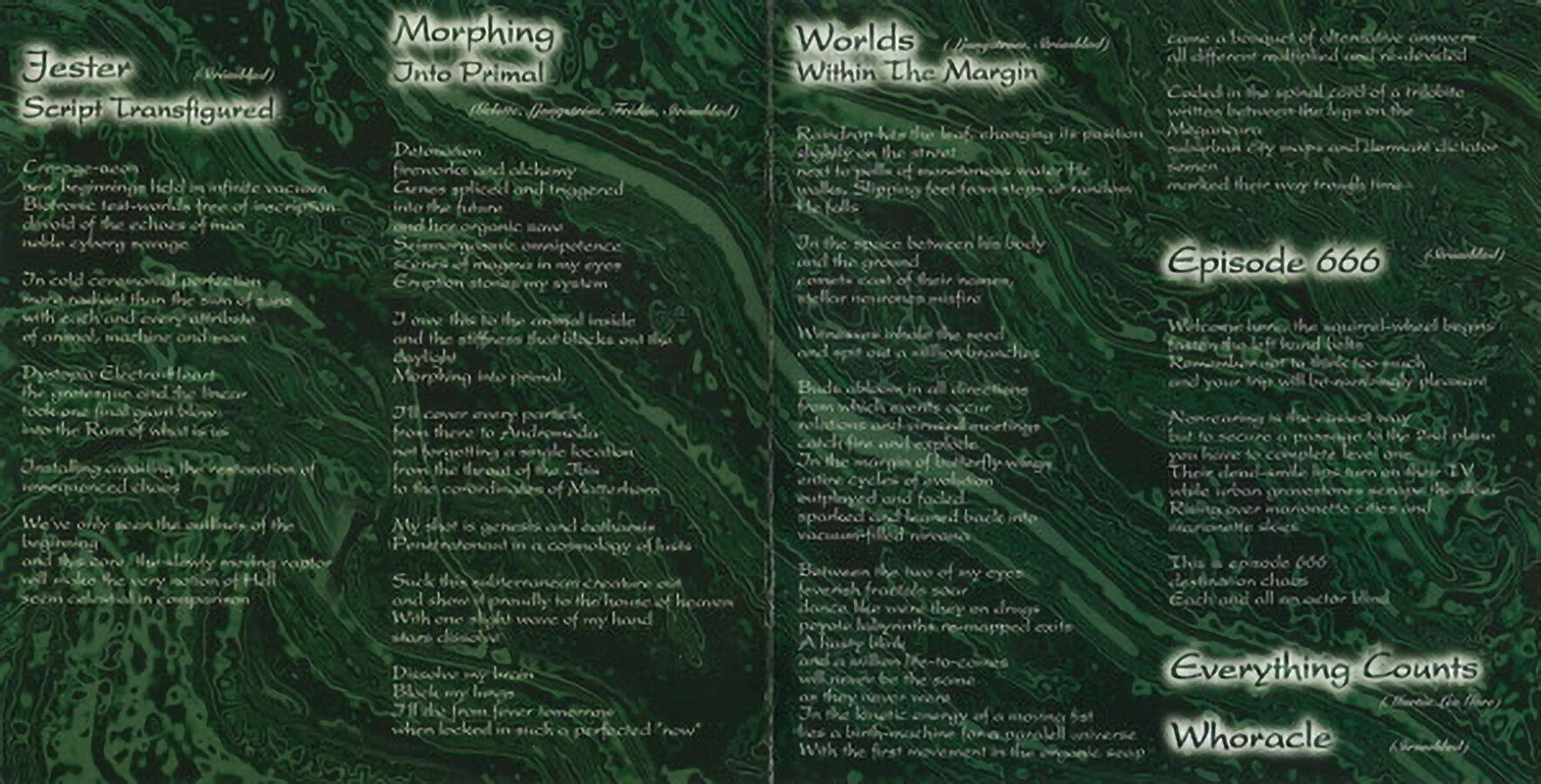 | Треклист | 1. Jotun 2. Food For The Gods 3. Gyroscope 4. Dialogue With The Stars 5. The Hive 6. Jester Script Transfigured 7. Morphing Into Primal 8. Worlds Within The Margin 9. Episode 666 10. Everything Counts 11. Whoracle Bonus Tracks 12. Clad In Shadows '99 13. Strong & Smart |