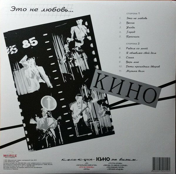 Виниловая пластинка Кино. Это не любовь (LP, винил, черный) (2012 год, Картонный конверт)