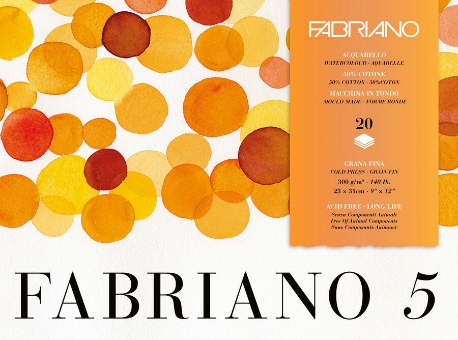 Бумага для акварели Fabriano Блок для акварели FABRIANO "5", 300г/м2, 26x36см, Фин, склейка 20 листов