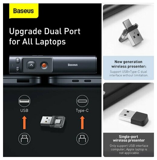 Лазерная указка-презентер Baseus Orange Dot Wireless Presenter 200m (Green Laser) (Charging) WKCD010013 интересное: