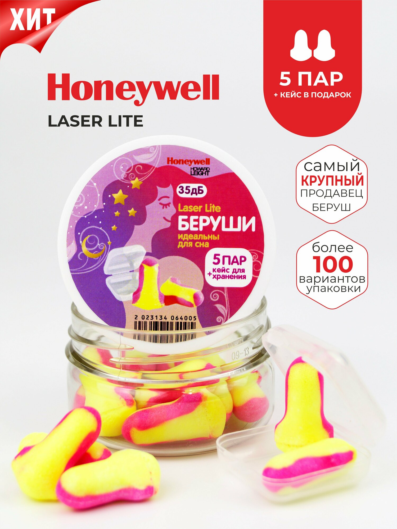 Купить Беруши для сна (лучшее шумоподавление) Honeywell 35дб, 5 пар + кейс в баночке