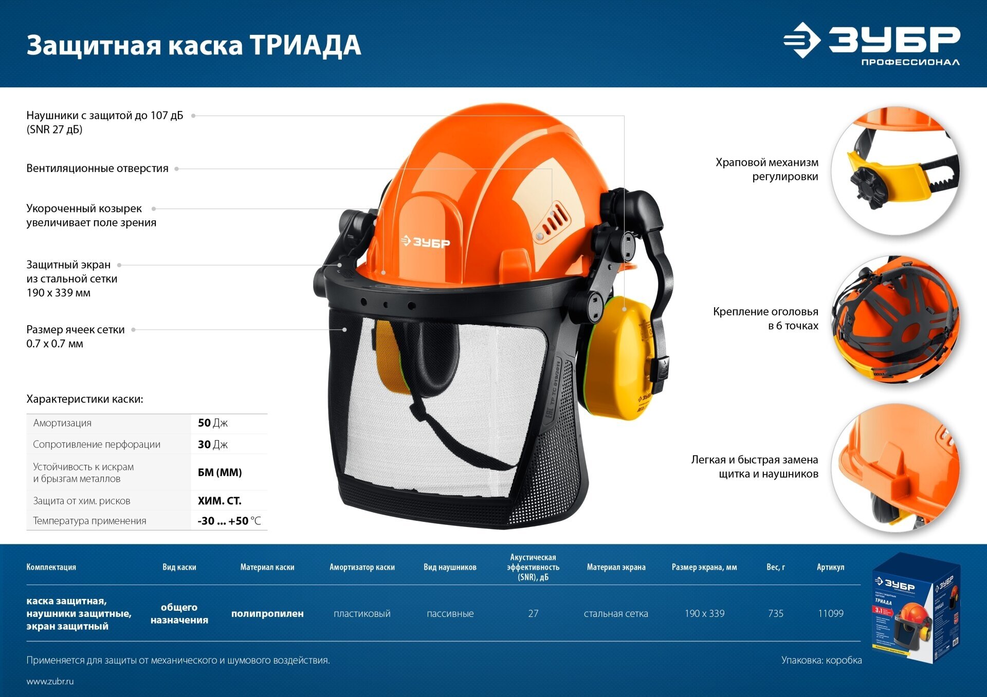 ЗУБР триада, защитная каска в комплекте с наушниками и защитным сетчатым экраном, Профессионал (11099) интересное: