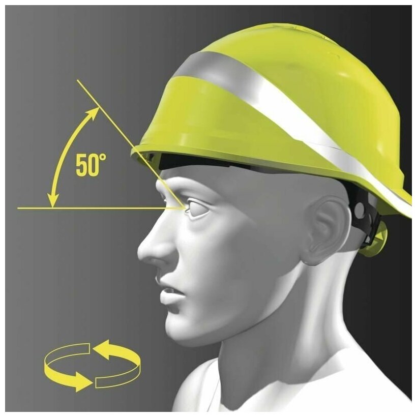 | Дополнительная информация | регулируется по обхвату головы от 53 до 63 см; защита против бокового сжатия; стойкость к брызгам расплавленного металла; защита против случайного кратковременного контакта с электрическим проводником под напряжением 440 В переменного тока; электроизоляция до 1000 В переменного тока или 1500 В постоянного тока; светоотражающая полоса по периметру каски |