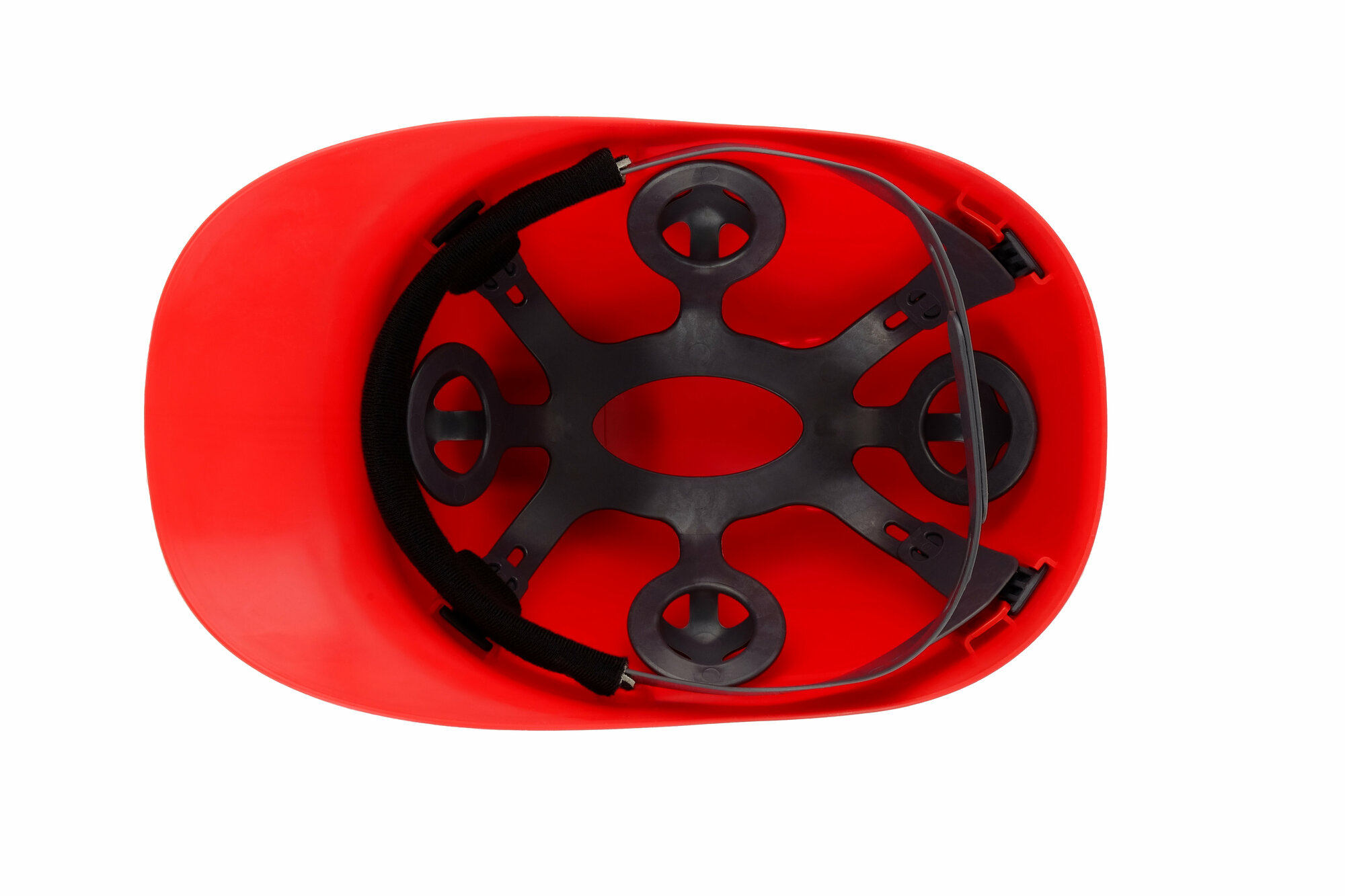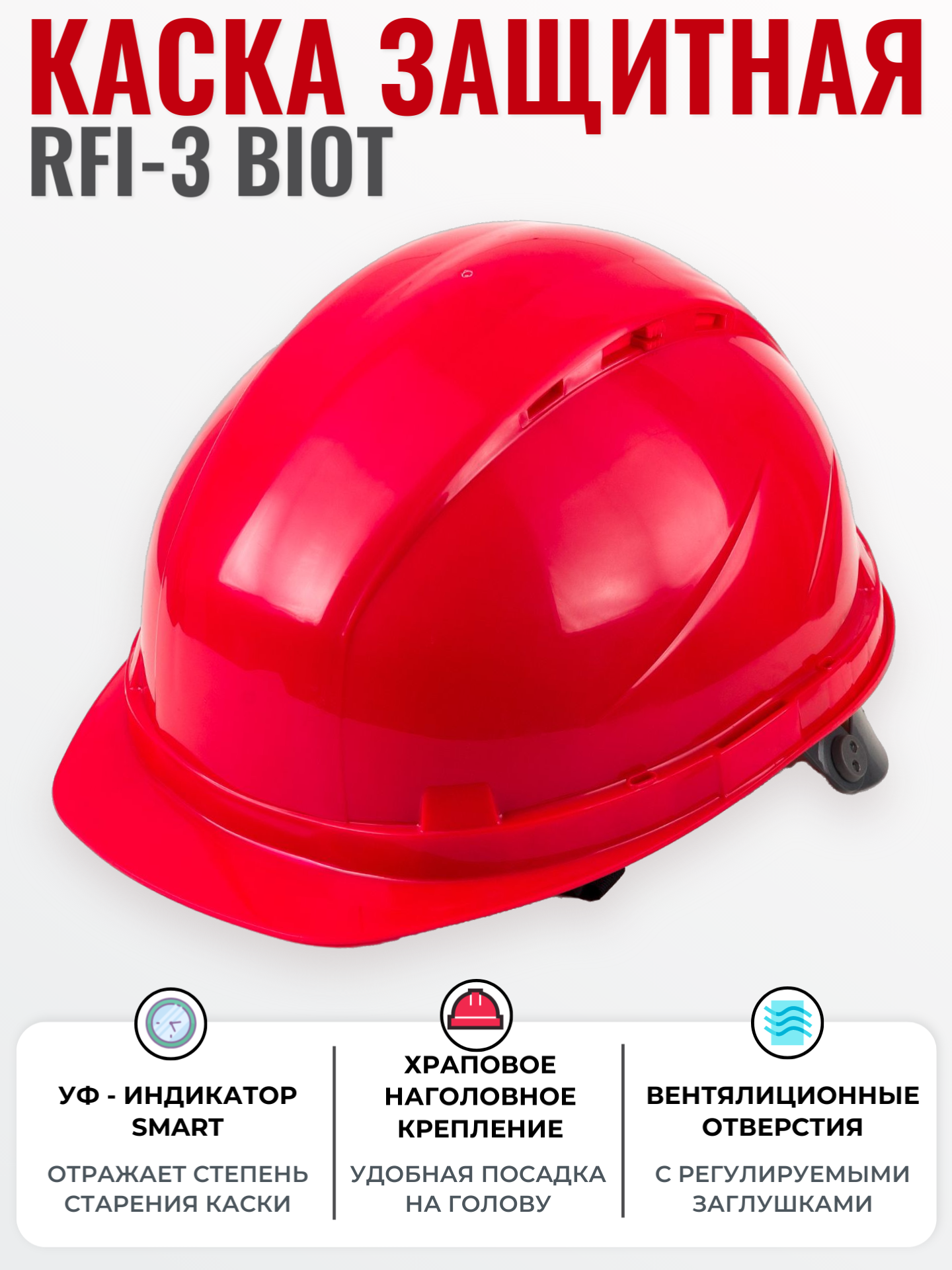 Каска строительная РОСОМЗ RFI-3 BIOT красная, УФ-индикатор старения каски, храповик