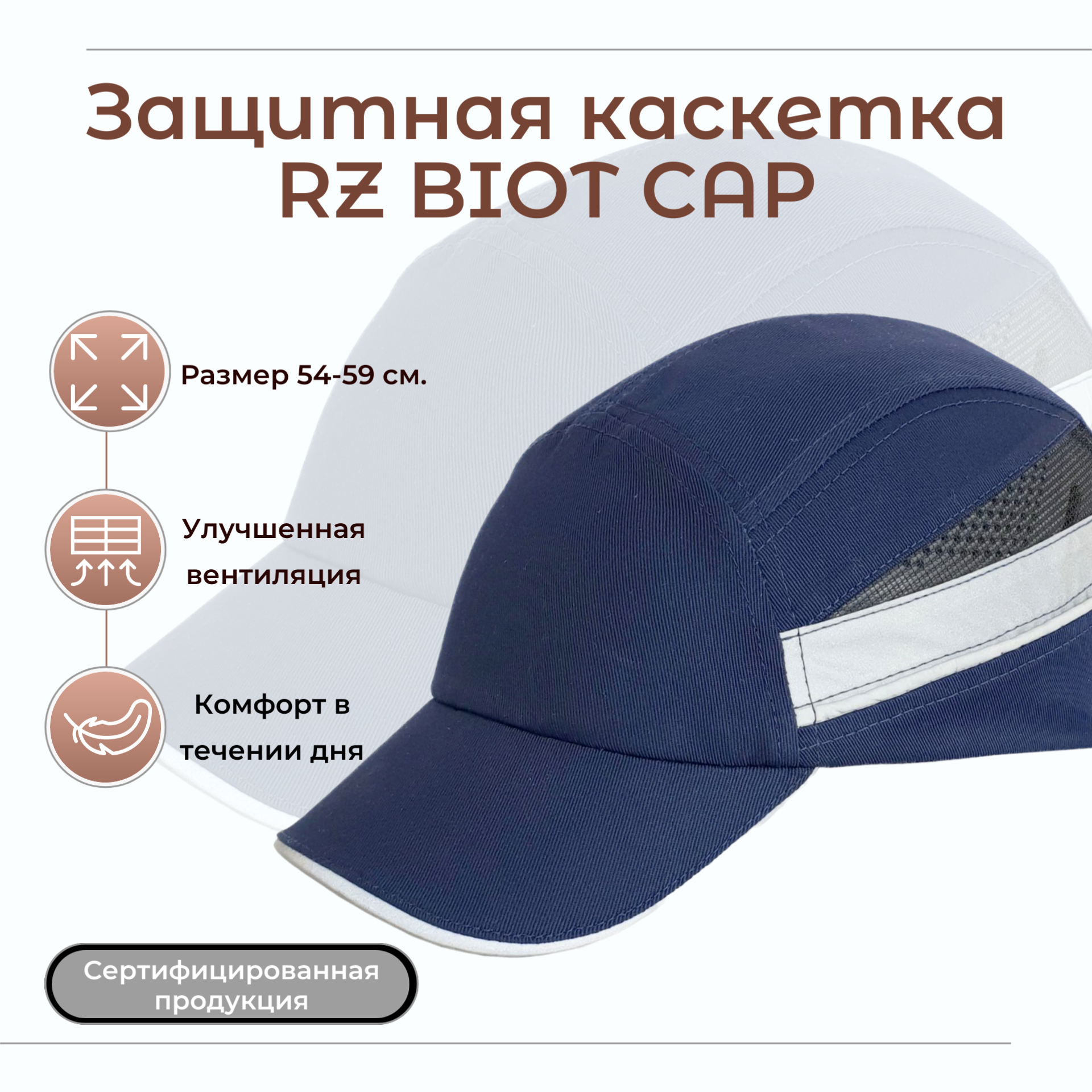 Защитная каскетка РОСОМЗ RZ BioT CAP синяя 92218 интересное: