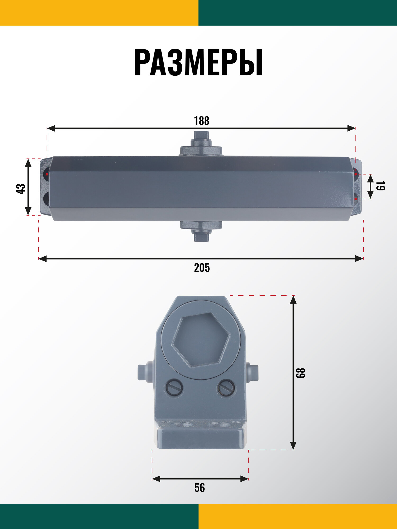 Доводчик дверной морозостойкий DORF ECONOMY, до 80кг, серебристый, L8223_silver_eco