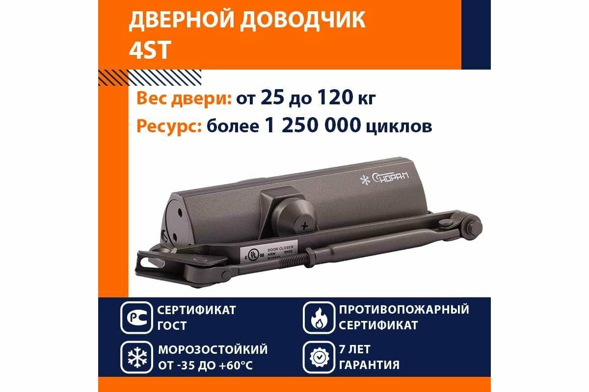 Доводчик дверной Нора-М 4ST (морозостойкий для тяжелых дверей 25-120кг) - Коричневый