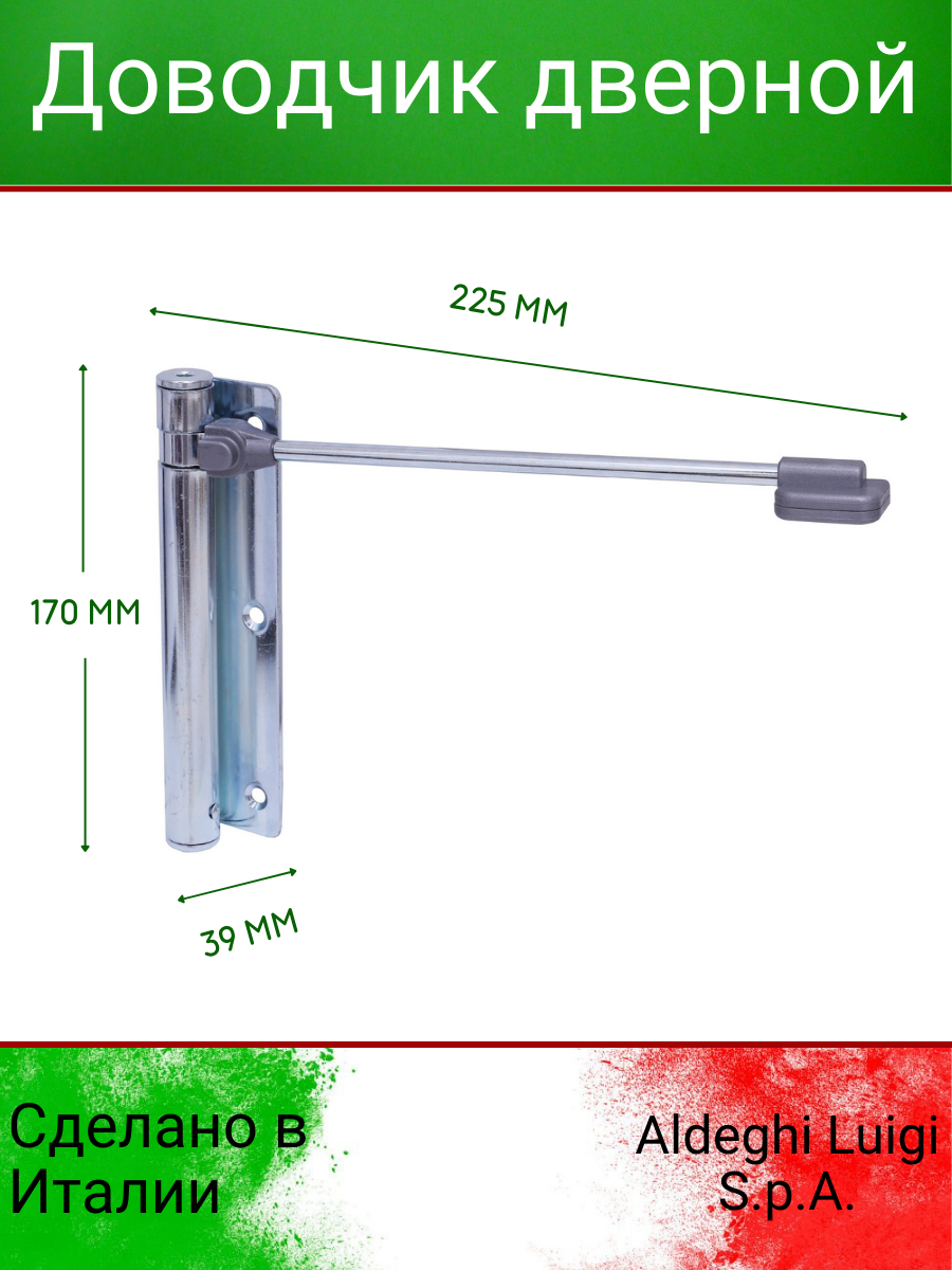 Доводчик дверной ALDEGHI LUIGI SpA правый, 170х39х225 мм, оцинкованная сталь, к-т: 1 шт + ключ с декоративными заглушками