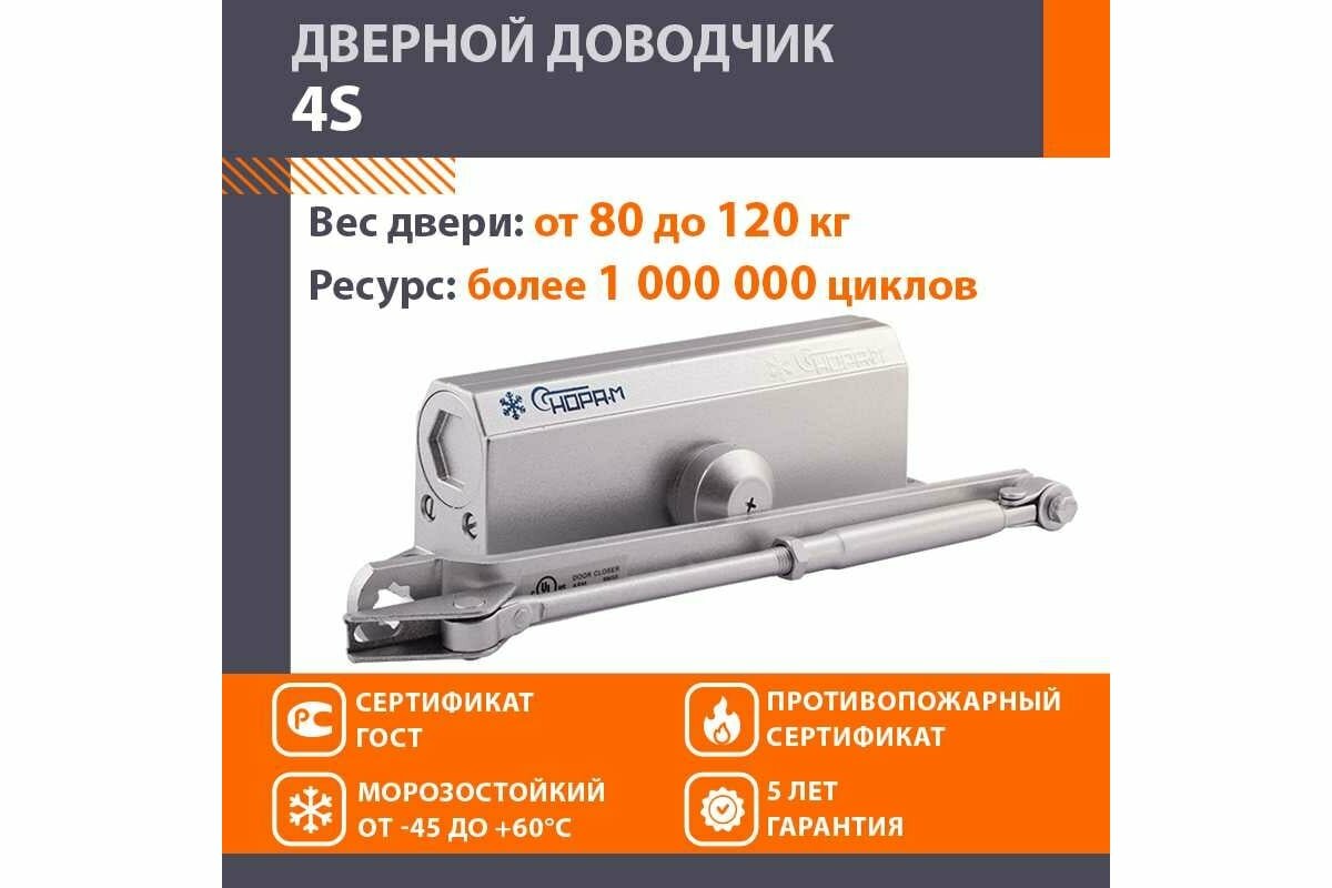Доводчик дверной Нора-М 4S, 80-120 кг, серебро (5003)